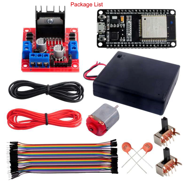 Плата ESP32 DOIT DEVKIT V1 с двигателем постоянного тока и комплектом драйвера двигателя L298N-Контрольная скорость и направление
