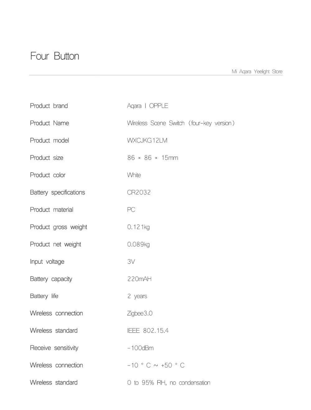 Этот переключатель должен работать с Aqara Gateway для достижения функции интеллектуального дистанционного управления.