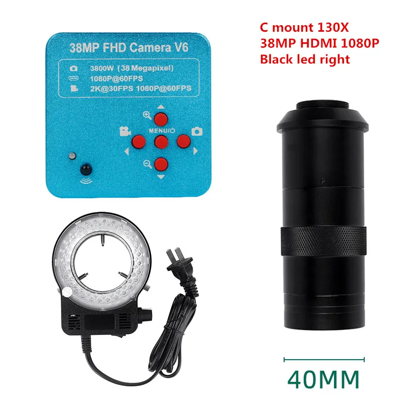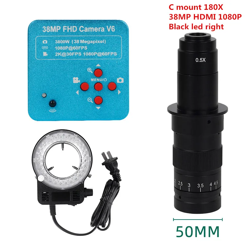 Цифровой промышленный видеомикроскоп, камера 130X C180X, набор объективов с креплением 38MP 1080P 60FPS HDMI USB для увеличения
