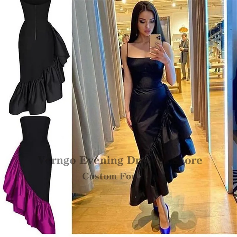 Женское вечернее платье-Русалка Verngo, черное асимметричное платье из тафты на тонких бретелях, с оборками, длиной до щиколотки, для выпускного вечервечерние