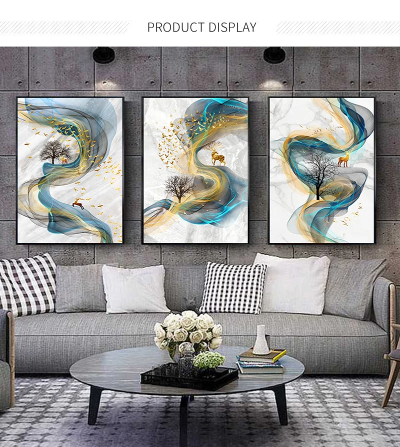 Абстрактная Золотая лента с оленем, роскошный постер, Картина на хо...