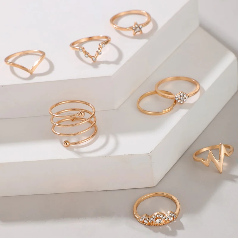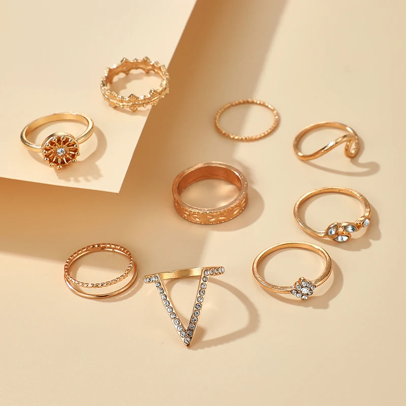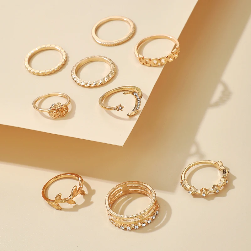 Набор Колец Docona в стиле бохо для женщин, комплект из 10 колец в стиле бохо, декор бесконечность, любовь, месяц, ракушки, геометрический дизайн, ювелирные изделия, 2021