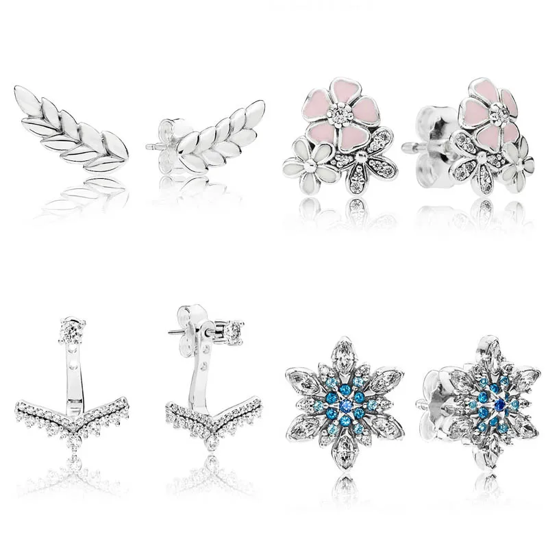 Новинка, серьги из стерлингового серебра 925 пробы, кристаллические серьги в виде снежинок с эмалью, бриллиантовые серьги принцессы, женские модные украшения