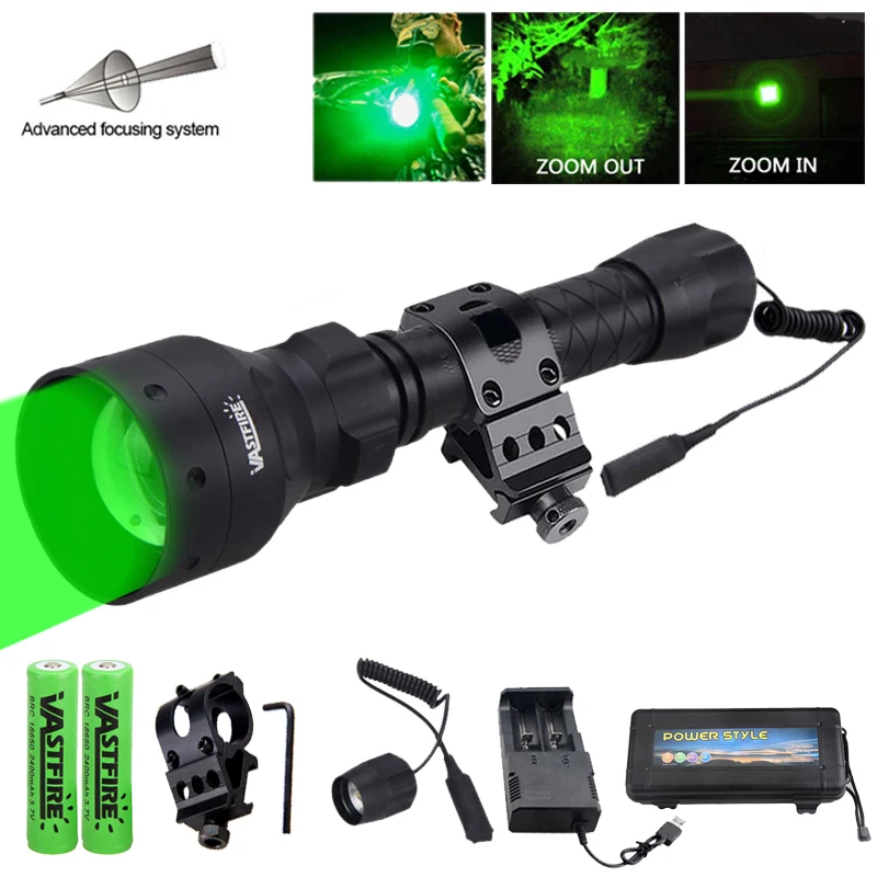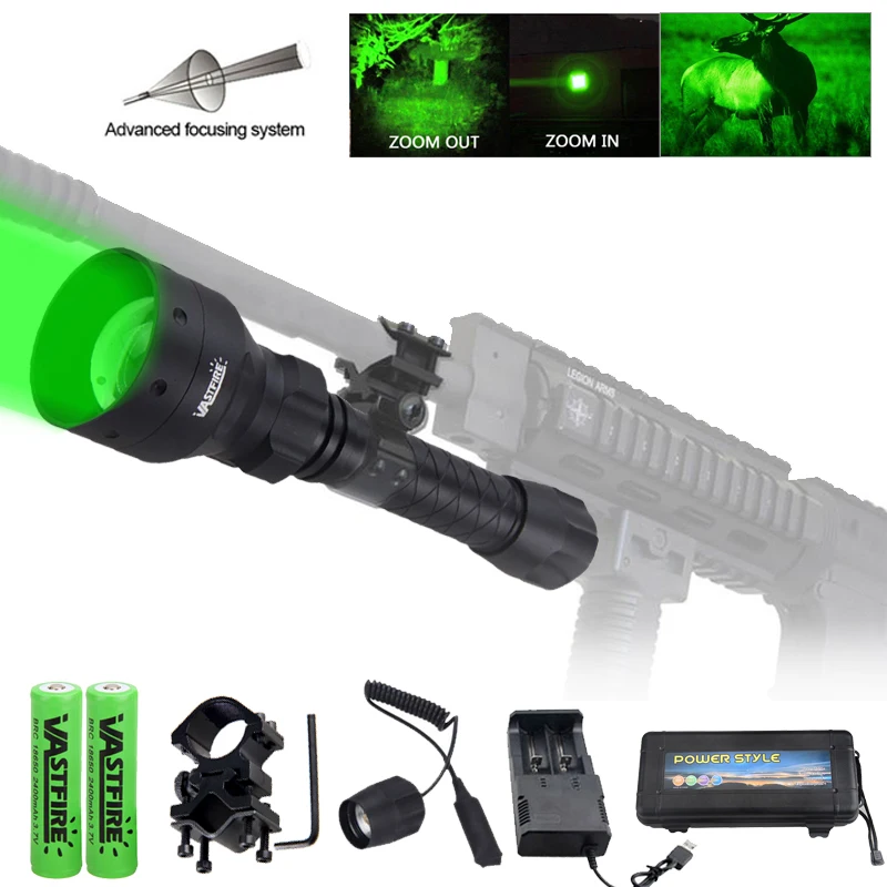 6000 люмен T50 зеленый свет XM-L E2 светодиодный тактический охотничий фонарь 18650 батарея фонарик Фонарь с зарядным креплением для прицела