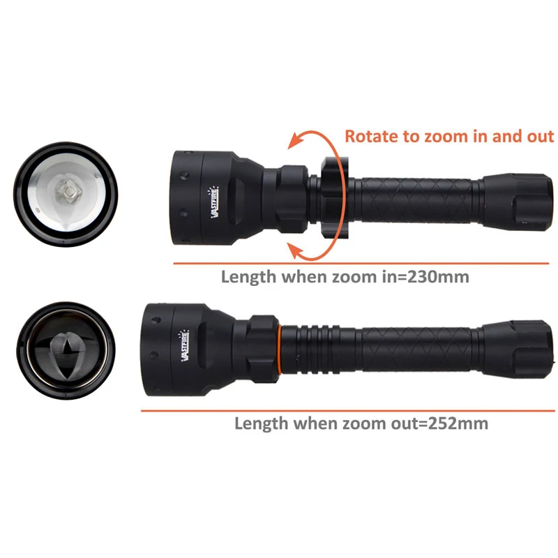 1. Высококачественный чехол для корпуса, не нравится дешевым фонарикам!2. Масштабируемый объектив 67 мм с функцией фокусировки, дальним расстоянием освещения3. Если вы хотите более длительное время использования, рекомендуем использовать 2 батареи 26650Характеристики:Модель: UF-1405Светодиодный бренд: E2Яркость: 6000lmМатериал изделия: алюминиевый сплавИсточник питания: питание от 2x 18650 батареи (как на ваш выбор)Режим переключения: только 1 режим (высокий) = только переключатель ВКЛ./ВЫКЛ.Переключатель: тактный переключательВодонепроницаемость: только защита от брызгОбъектив: 67 мм выпуклая линзаЦвет корпуса: черныйВремя работы: 1-3 часаРазмеры: 210 мм (+ 17 мм) (длина)/54 мм (головка)/25 мм (корпус)/34 мм (хвост)Вес: около 375 гРемешок: в комплекте