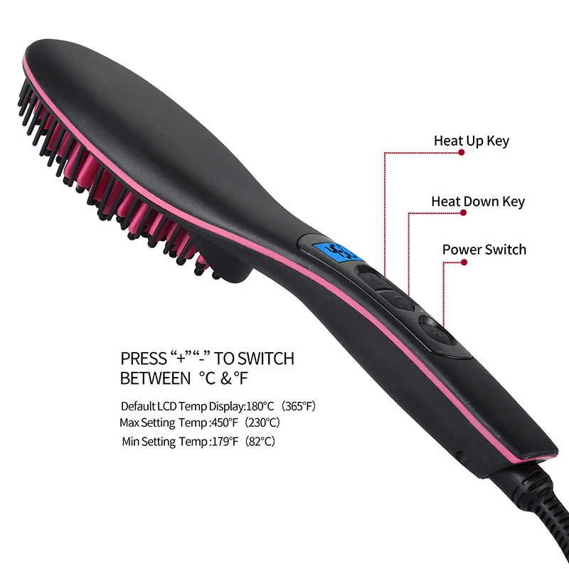 Преимущества: как сочетание выпрямителя для волос и гребня, электрическая щетка для выпрямления волос станет идеальной заменой традиционного плоского утюга, который помогает решить вашу проблему с прической и поддерживать массаж головы без каких-либо повреждений: он разработан с точным контролем температуры, чтобы гарантировать анти-ожогов и теплый контактный массаж. Встроенные автоматические технологии постоянной температуры и быстрого нагрева гарантируют снижение вреда для волос функции: функционирование антистатического, антицарапного и не поврежденного волос, выпрямитель для волос эффективно помогает решить проблему завязывания волос, уменьшает боль и ломается волос; Вы также можете воспользоваться преимуществом массажа головы, который хорошо подходит для волосяного фолликула кожи головы для более здорового и яркого состояния волос температура: макс. 446 ℉, автоматическая постоянная температура при 356 ℉ для всех типов волос, индивидуальный набор 410 ℉для натуральных волос, 446 ℉ для густых ИЛИ волнистых волос, Легкий и эффективный выпрямляющий Стиль Особенности: Массажер для волос + керамический утюжок для выпрямления + расческа для распутывания + модный внешний вид, идеальное сочетание четырех вместе, портативный и мощный стиль дома или путешествия