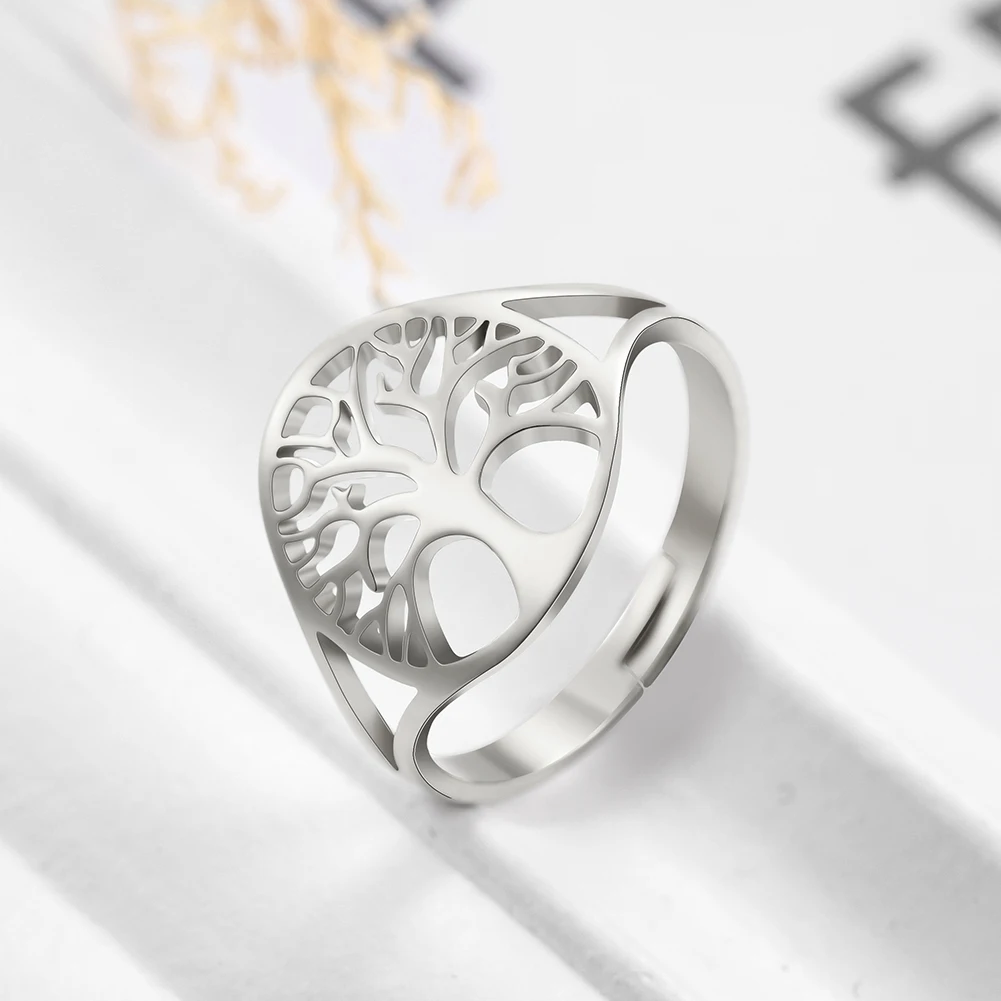 Древо жизни кольца для женщин1. Цвет: стальной цвет, золотой цвет, цвет розового золота2. Материал: нержавеющая стальПочему стоит выбрать нержавеющую сталь:1. Без ржавчины;2. Не вызывает аллергии;3. Мощный анти-Кислотный, анти-щелочной;4. Нет деформации;5. Не выцветает.