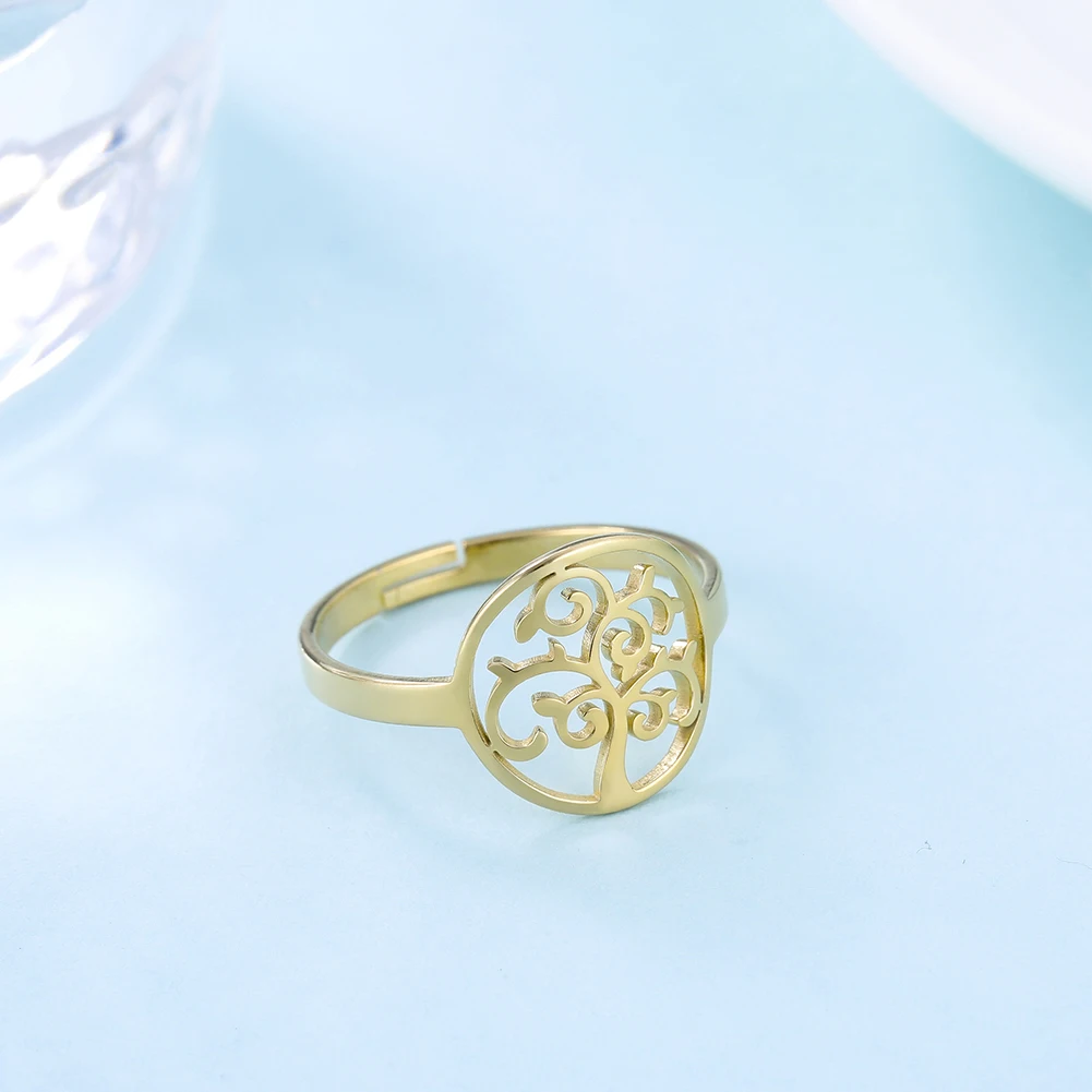 Кольца COOLTIME из нержавеющей стали с изображением дерева жизни для женщин, амулет золотого цвета, регулируемые парные кольца, Подарочные ювелирные изделия, оптовая продажа, новинка 2022