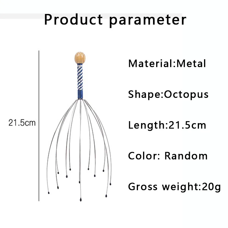 Товар: массажер для головы Материал: металл S hape:Octopus Длина: 21,5 см Цвет: Случайный Вес брутто: 20 г
