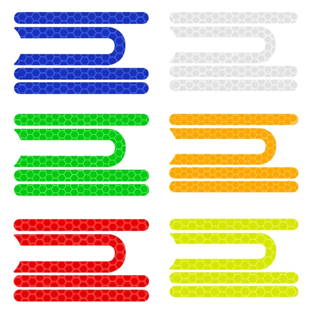 Тип: Светоотражающая полоса Материал: ПВХ Цвет: как показано Сфера применения: подходит для электрического скутера Xiaomi M365 и других электрических скутеров Посылка: 2*4 шт./компл. светоотражающая лента