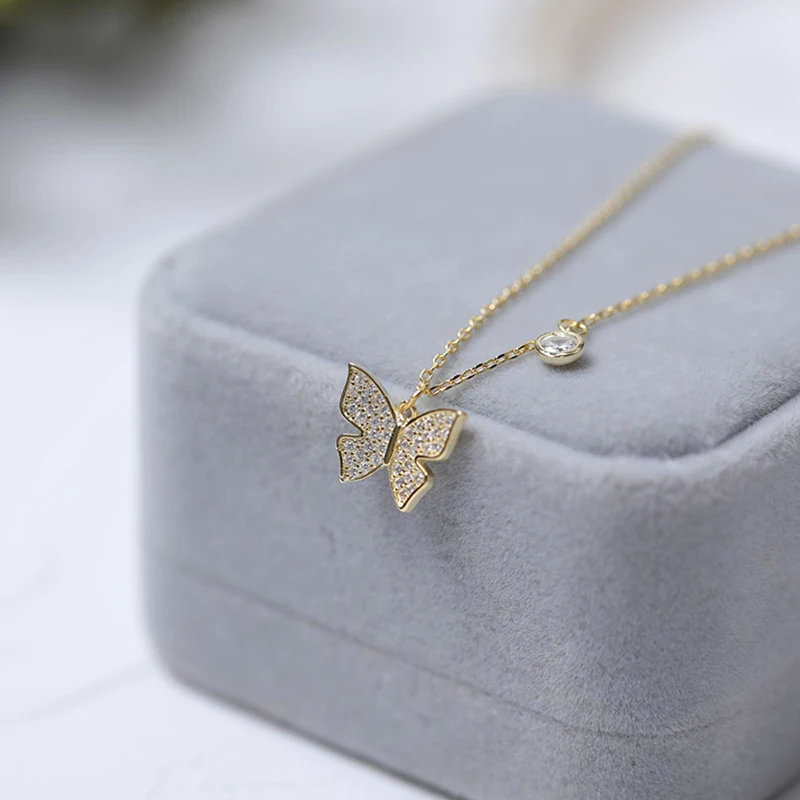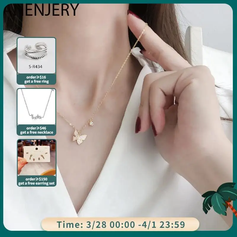 Женское Ожерелье-цепочка ANENJERY, серебряная медная цепочка-бабочка с микро-инкрустированным блестящим цирконием, ювелирные изделия, подарки S-N744