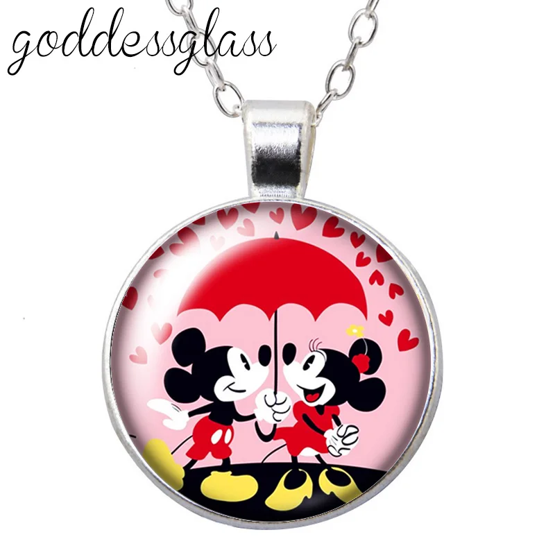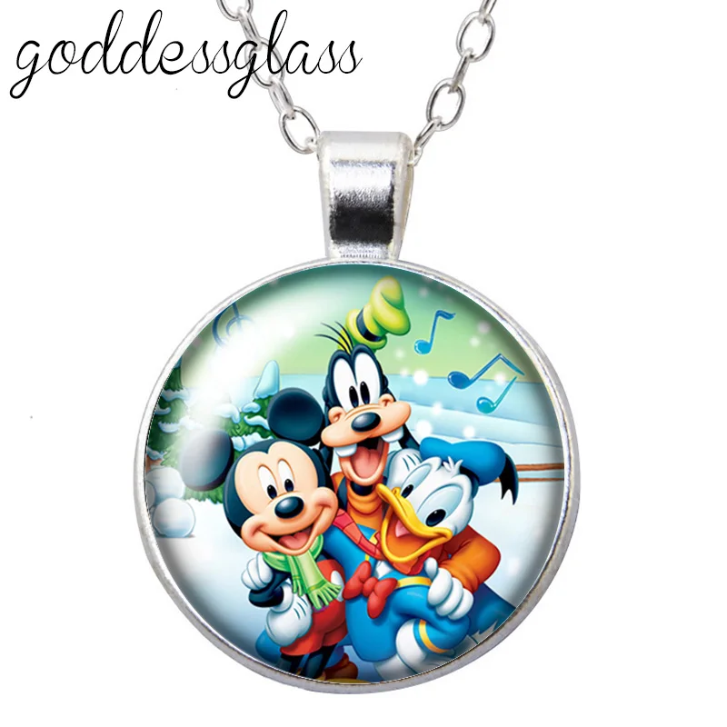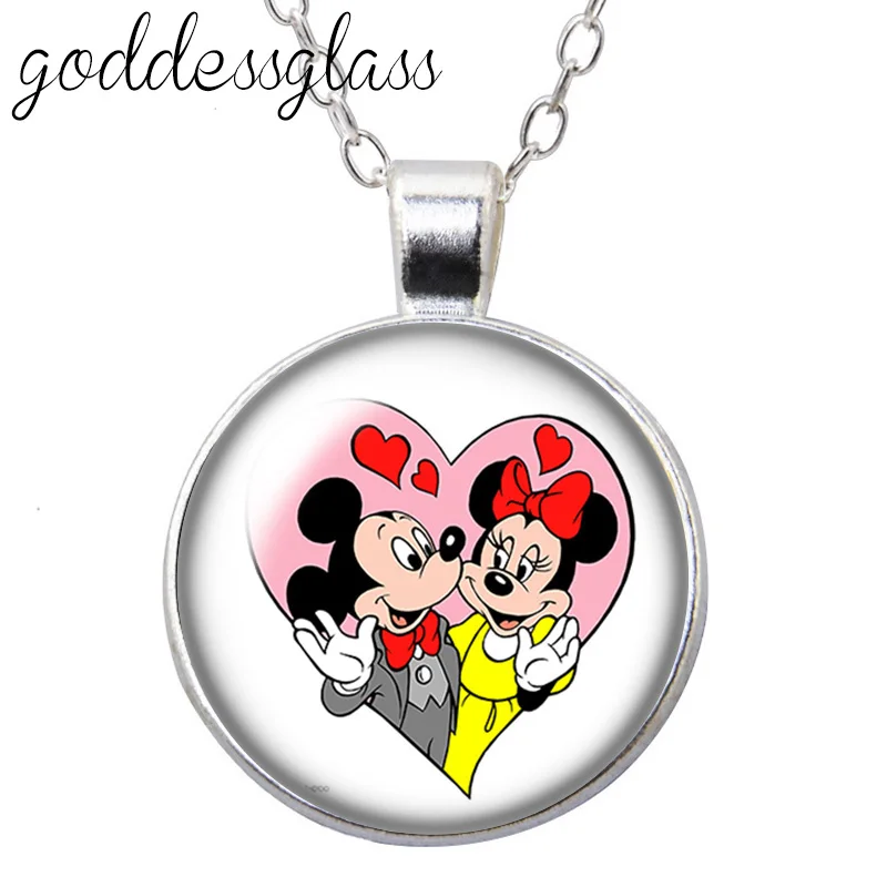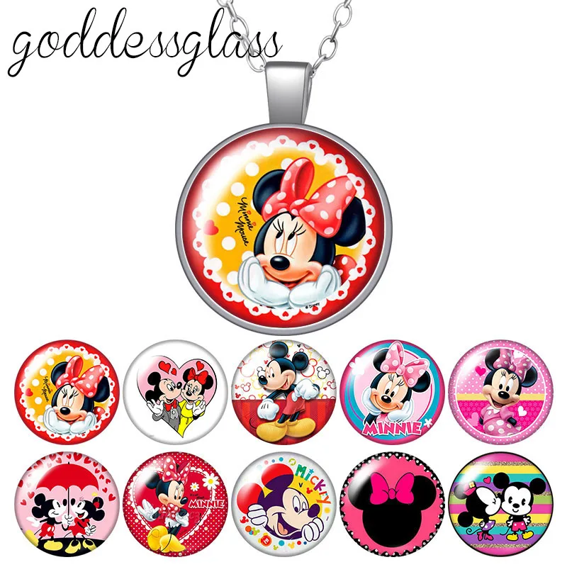 Милый Микки Маус Минни Маус Детский подарок круглый стеклянный кабошон посеребренныйхрустальный кулон ожерелье ювелирные изделия для подарка