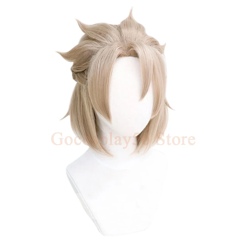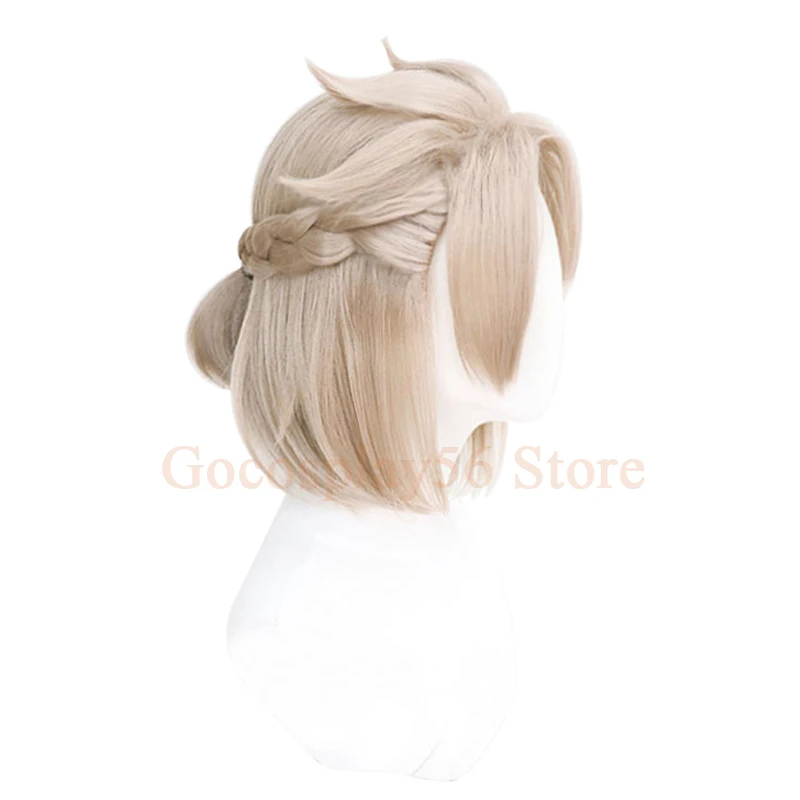 Парик Genshin Impact Albedo для косплея, короткий Плетеный маленький конский хвост 35 см, термостойкие волосы, ролевые игры на Хэллоуин