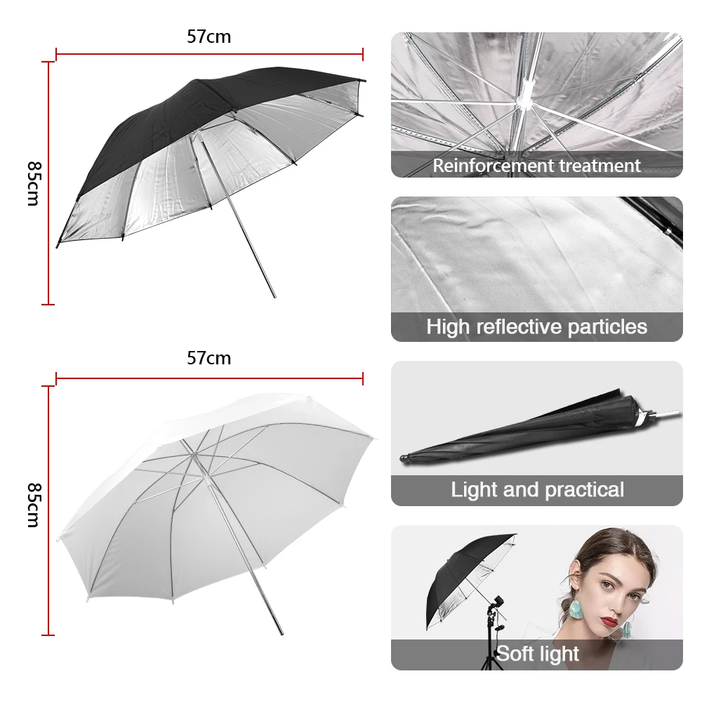Превосходный смягчающий светильник и удаляет тени, чтобы сделать идеальную съемку. Серебристый внутренняя уход за кожей лица может свести к минимуму светильник потери и максимизировать светильник распространения. Белый мягкий чехол усиливает эффект мягкого светильник.