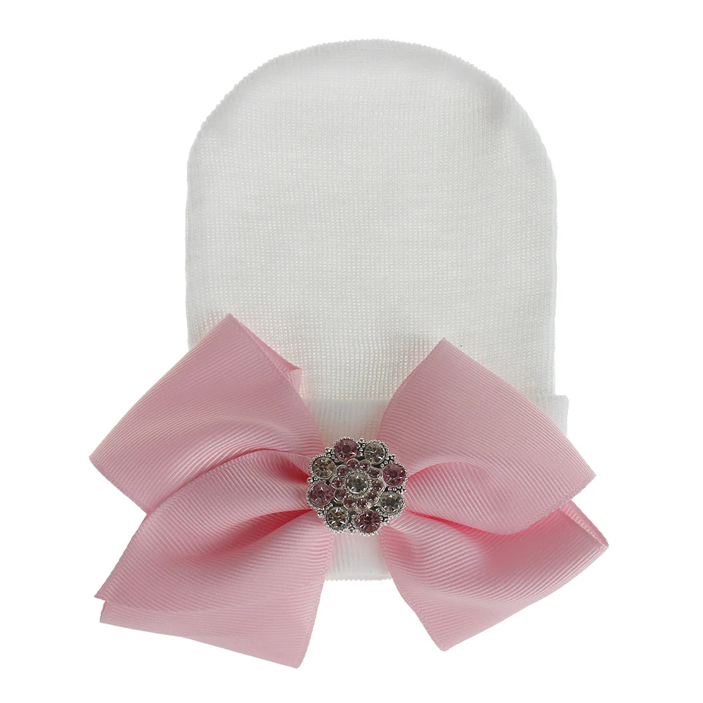 Шапка для новорожденных, однотонная, из шифона, с бантом, розового ...