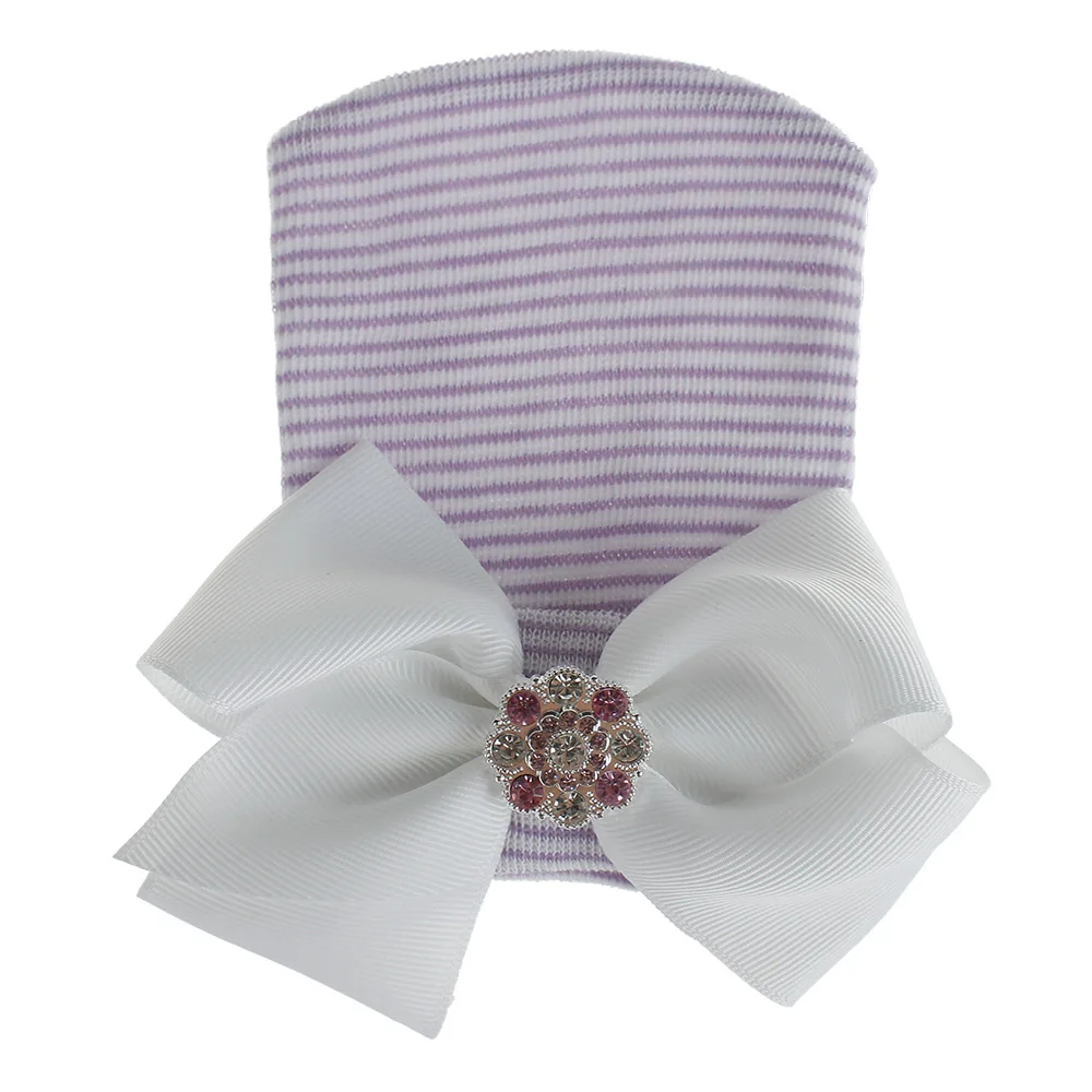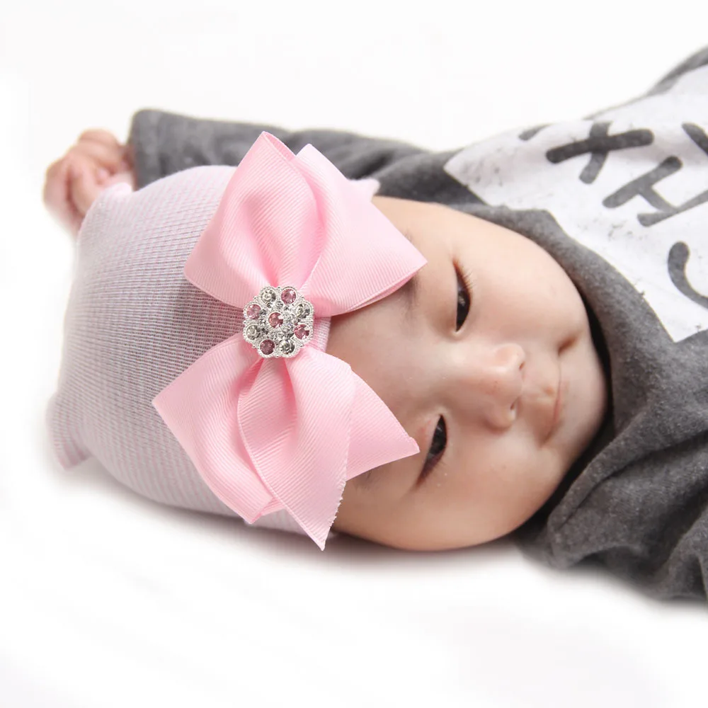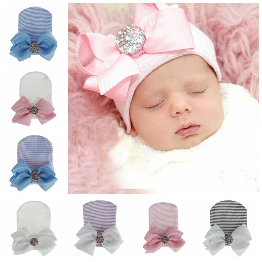 Модная детская шапка с бантом из блестящих страз, детская шапка в рубчик с бантом и полосками, Детская вязаная хлопковая шапочка, Детские аксессуары
