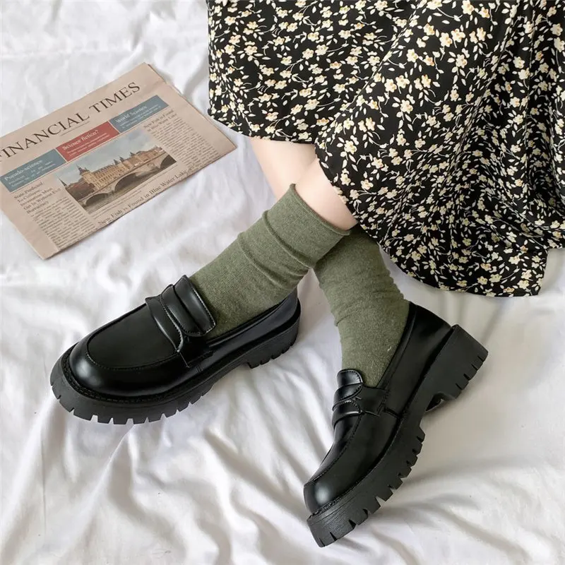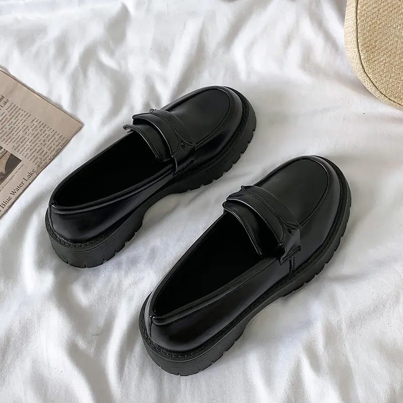 Ботинки "Харадзюку" Женские однотонные черные лоферы из искусственной кожи, женская обувь, 2021 повседневная женская обувь на платформе, Туфли Мэри Джейн в стиле Лолиты