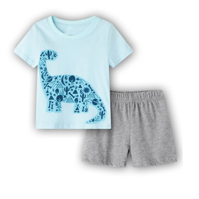 Комплект детской одежды для мальчиков, хлопок, динозавр, летняя оде...