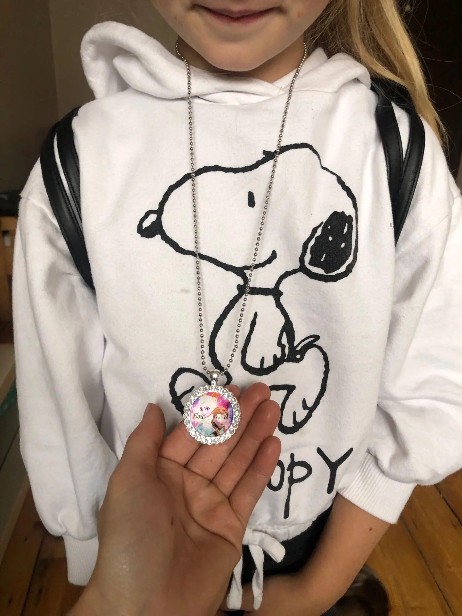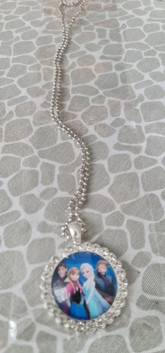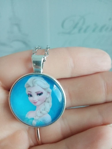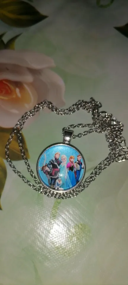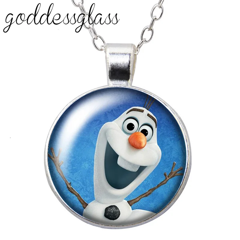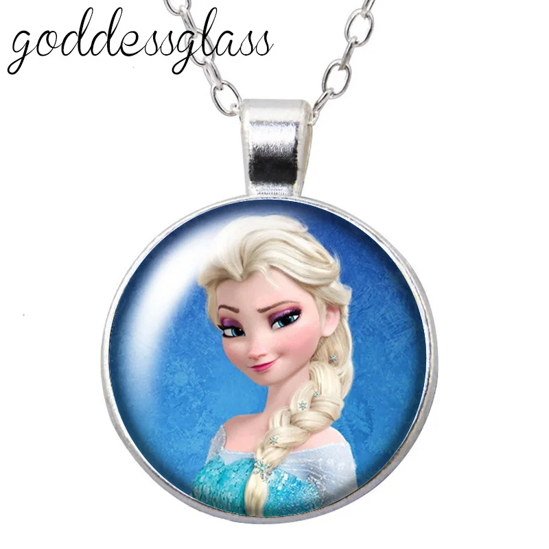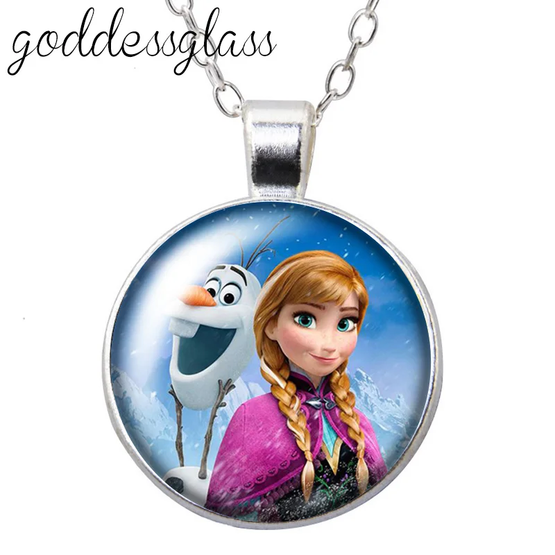 Зимний подарок принцессы ЭЛАС Анна для девочек, круглый стеклянный кабошон, посеребренныйхрустальный кулон, ожерелье, ювелирные изделия для подарка
