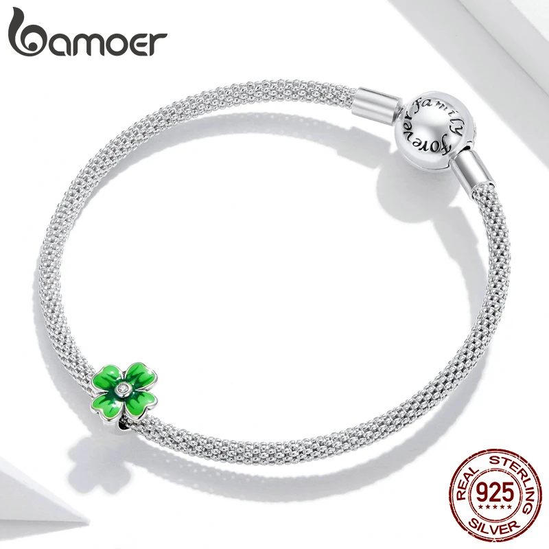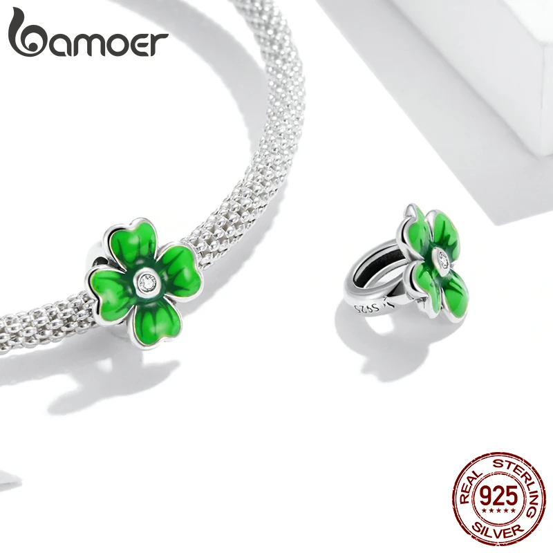 Bamoer Lucky Clover, серебро 925 пробы, листья, модный шарм для оригинального браслета, Женские Ювелирные изделия, сделай сам, аксессуары SCC1749