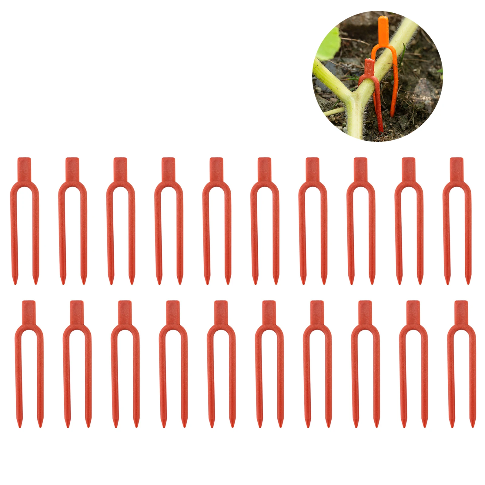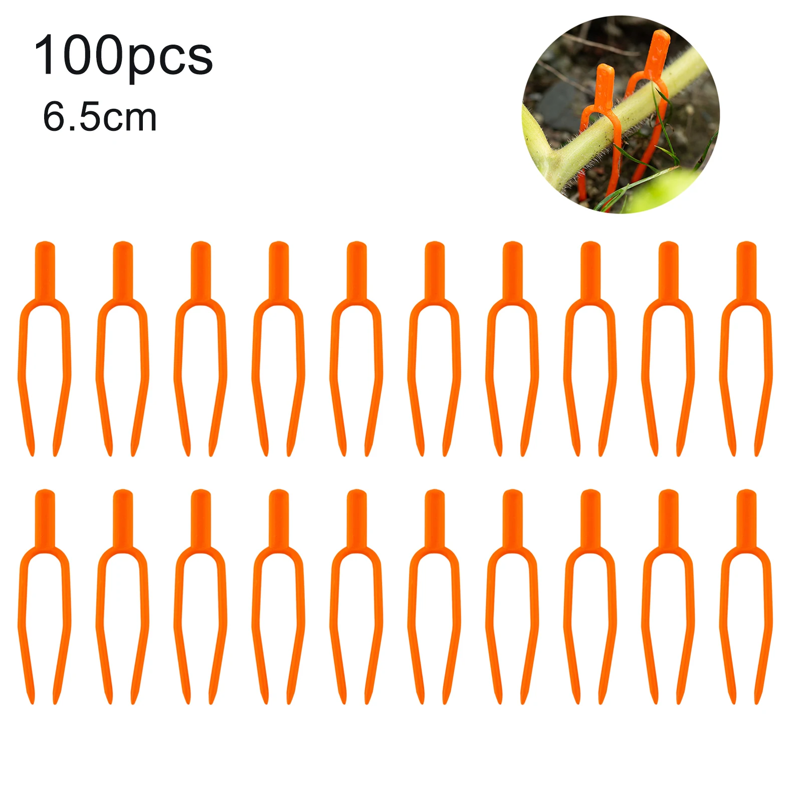 Вилка с зажимом для растений 100 шт., инструмент для саженцев клубники, пластиковый, экологически чистый, оранжевый, прочные фиксированные зажимы для садоводства