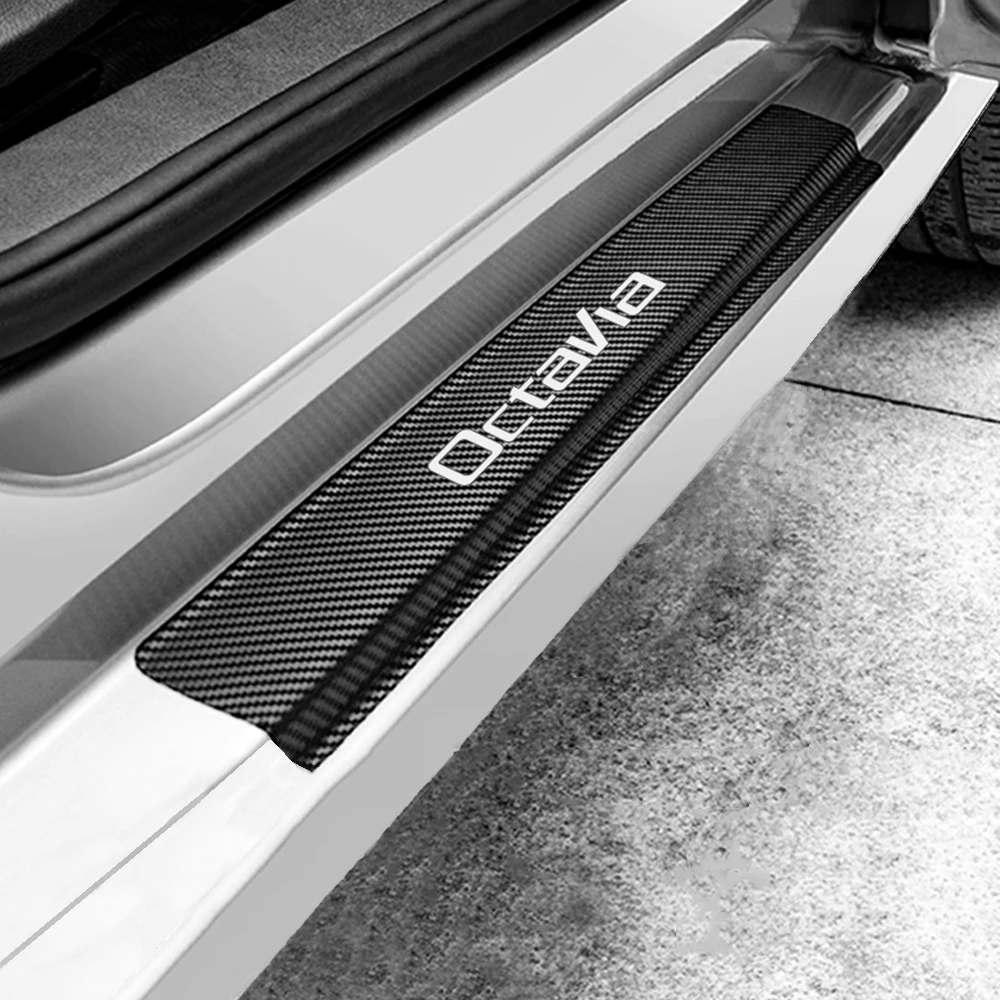 4 шт., автомобильные защитные наклейки на порог для Skoda Octavia 2 3 MK1 MK2 MK3 A7 A5, автомобильные наклейки с защитой от царапин, аксессуары из углеродного волокна
