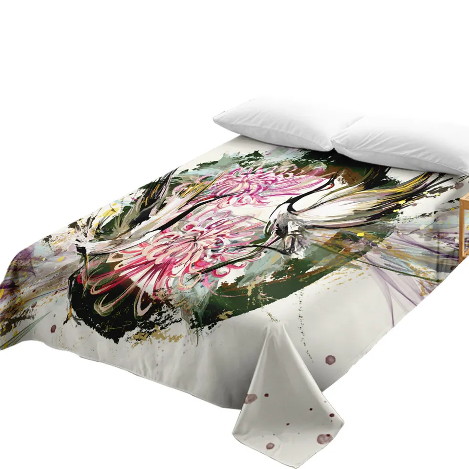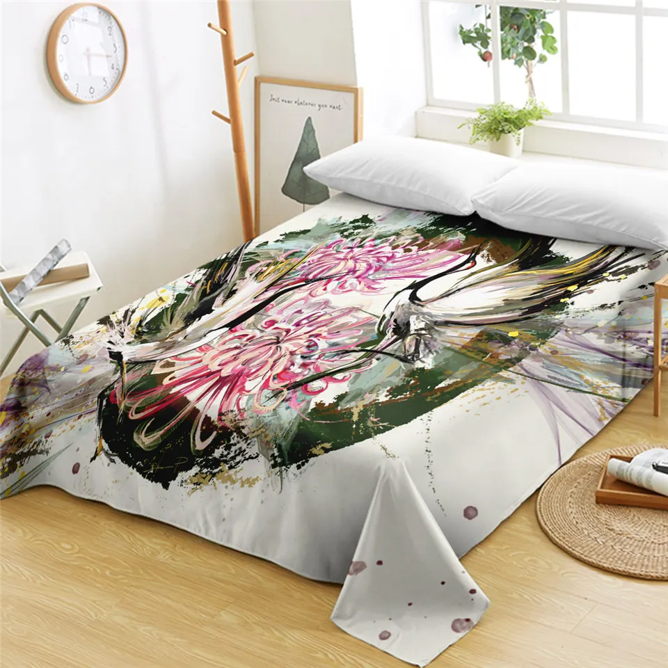 Птица от Jp.pemapsorn кровать лист кран в китайском стиле плоский лист акварельное искусство покрывала 1-шт Хризантема цветок drap de lit