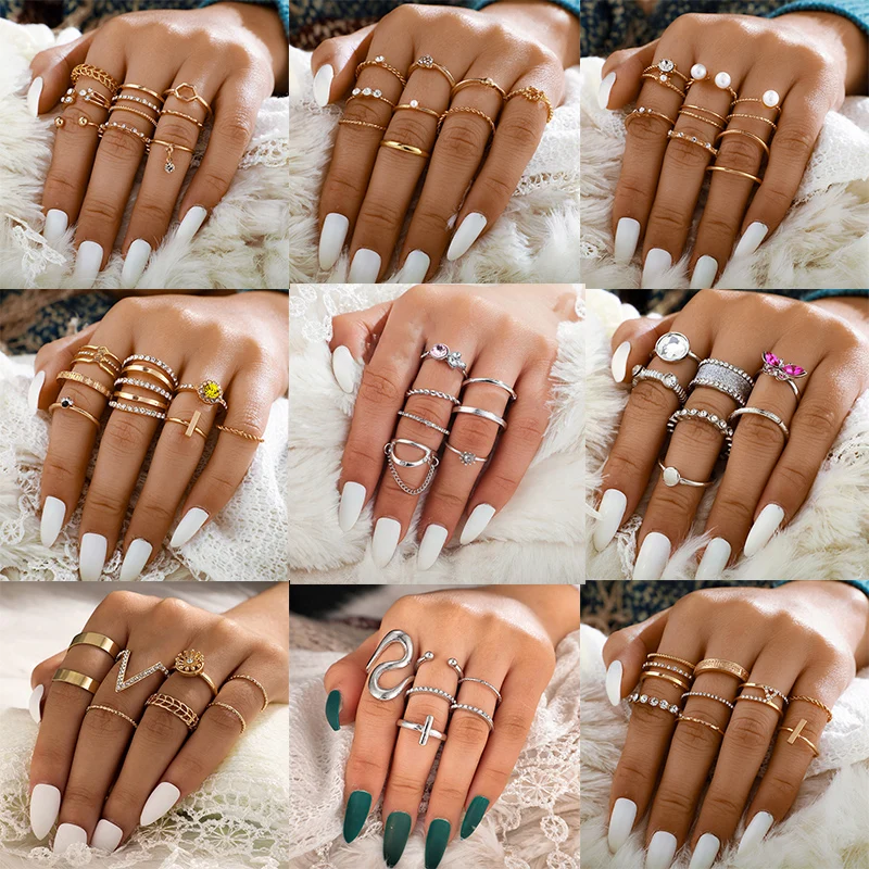 Комплект колец docona на миди для женщин, Роскошное винтажное открытое геометрическое кольцо с кристаллами и волнами, с жемчугом, Любовное сердце, ювелирные украшения, 11 видов