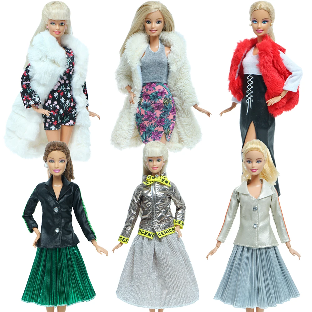 Модные кукольные наряды, мягкое меховое пальто, Цветочное платье, кожаная куртка, плиссированная юбка, одежда, аксессуары для куклы Барби, детская игрушка