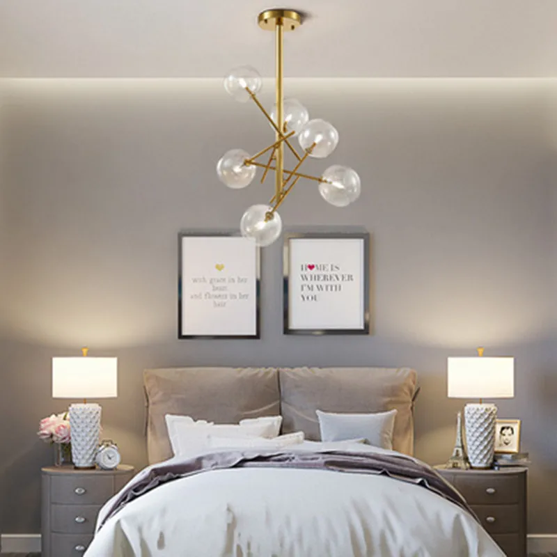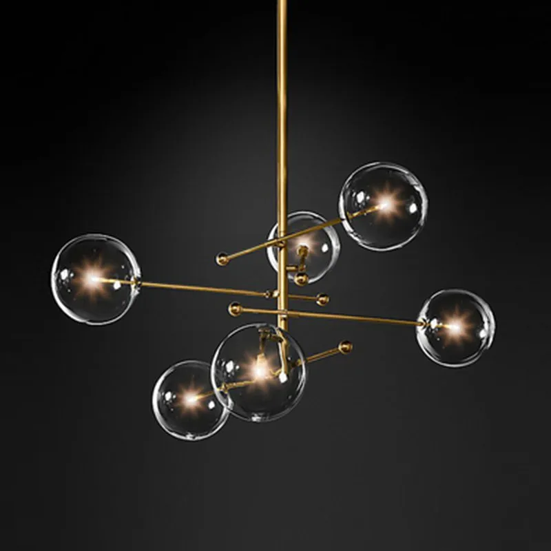 Люстра со стеклянными шариками, 6 лампочек, прозрачное стекло, пузы...