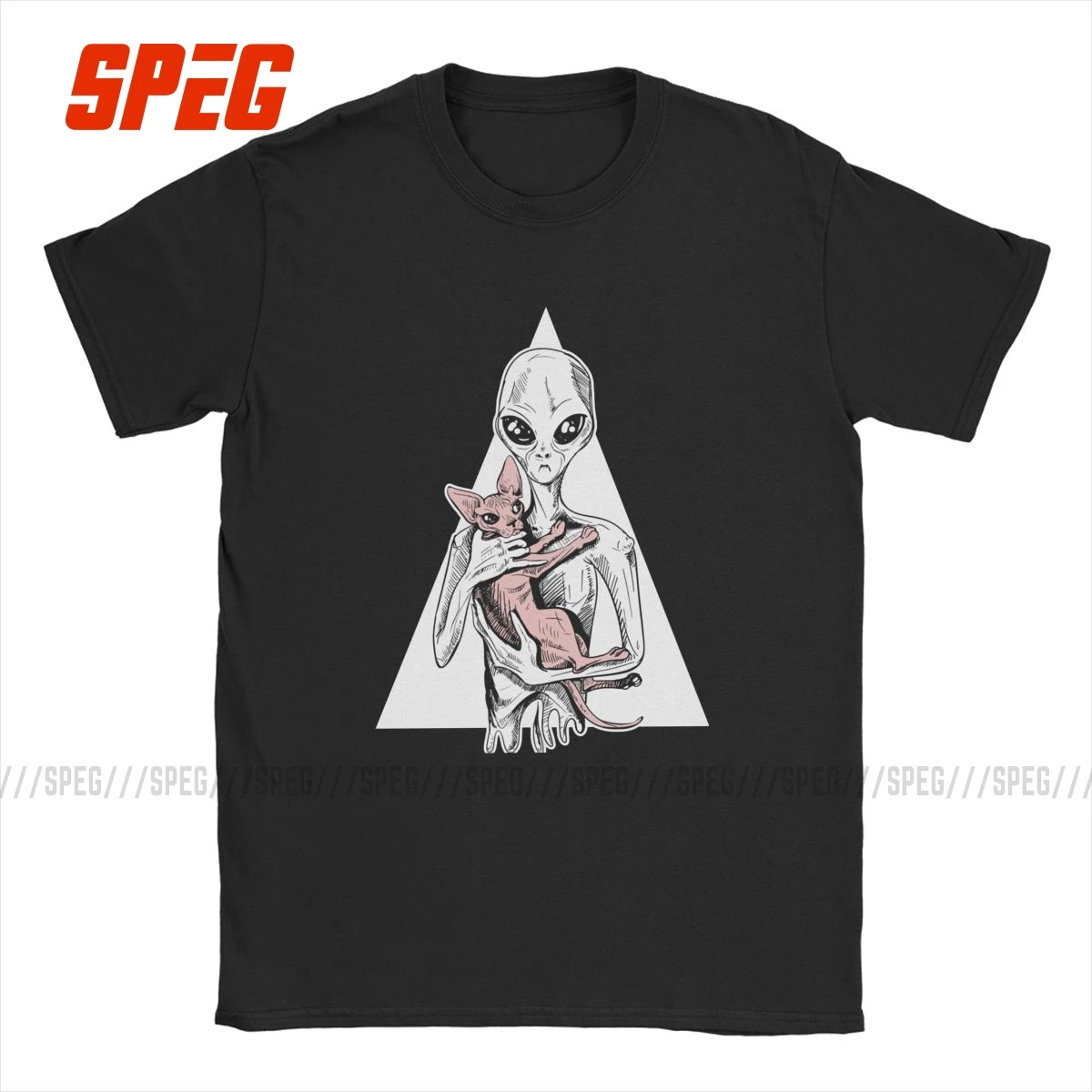 Футболка мужская хлопковая с круглым вырезом, винтажная тенниска с котом Сфинкса и инопланетянина, рубашка с короткими рукавами, подарок на день рождения
