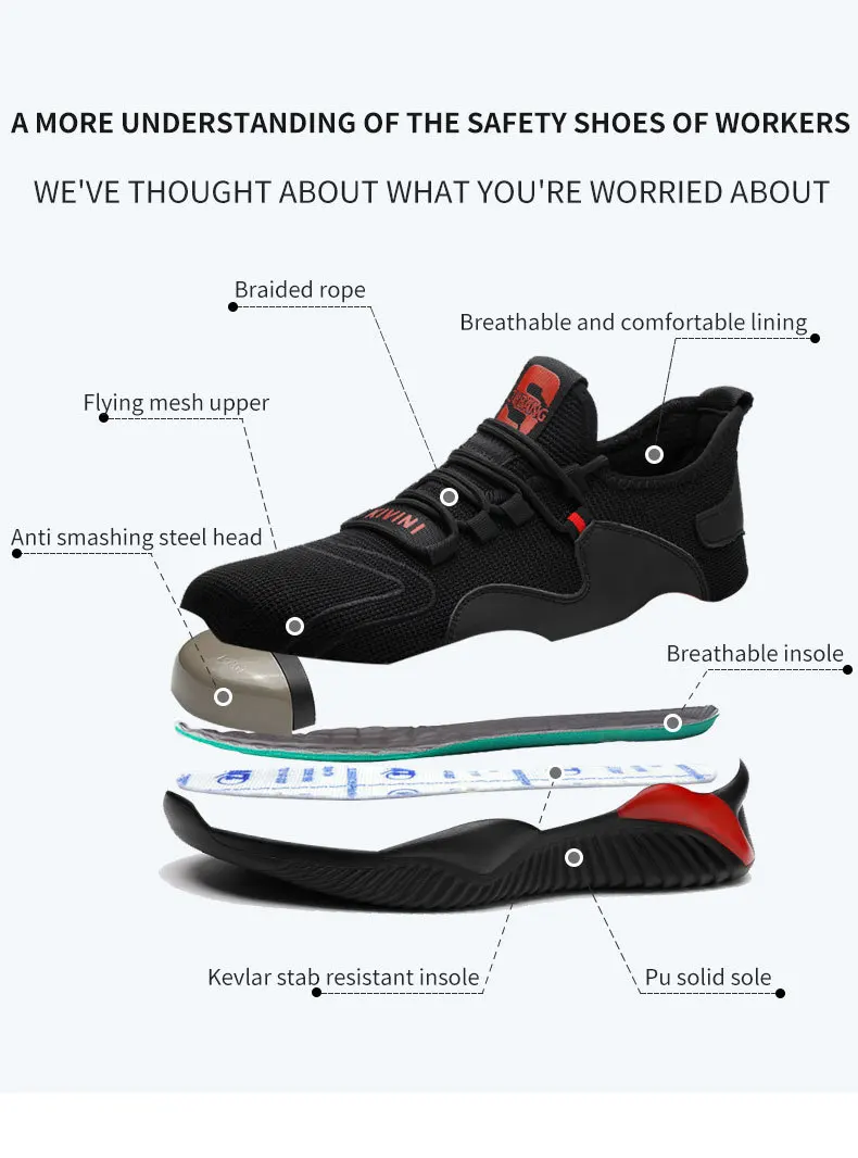 Светильник кие дышащие рабочие ботинки со стальным носком Мужская безопасная обувь, повседневные кроссовки Суперсемейка с защитой от прокалывания, Прямая доставка
