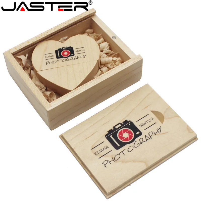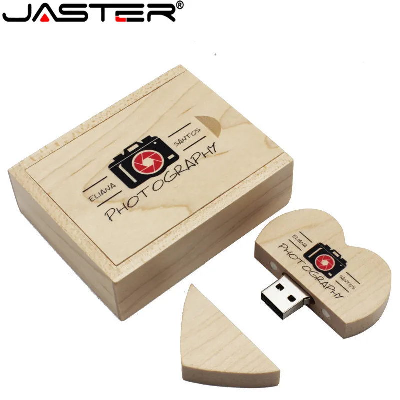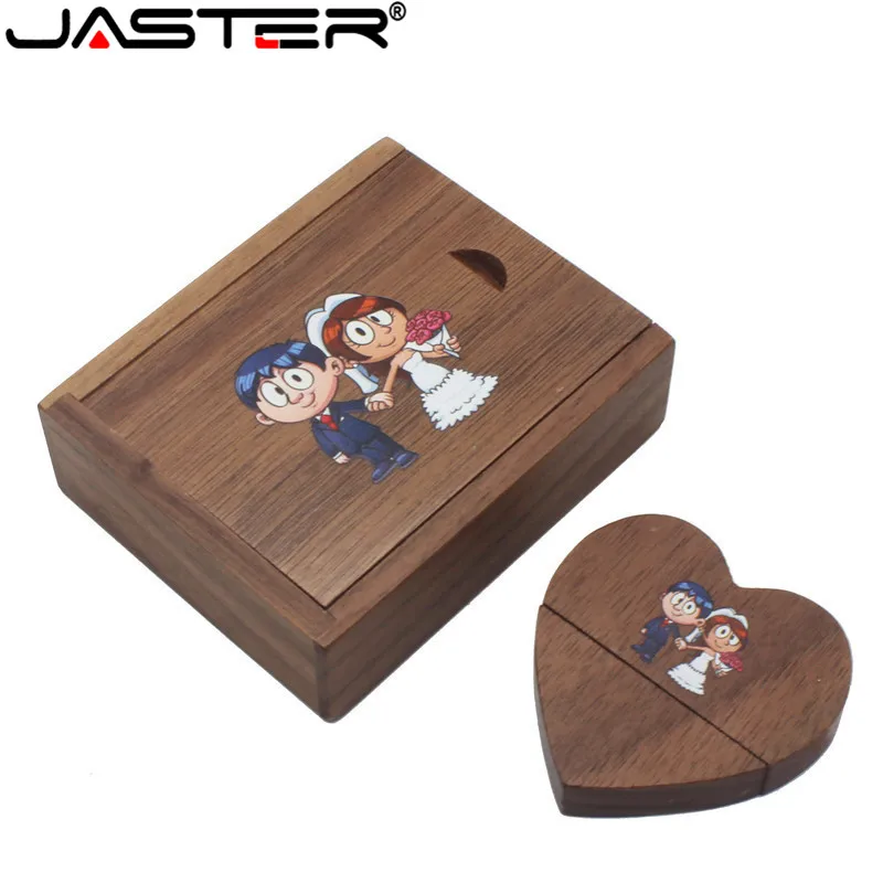 USB-флеш-накопитель JASTER деревянный в форме сердца с коробкой, 4-128 ГБ