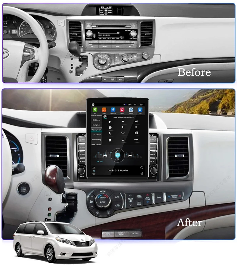 Автомобильный радиоприемник, экран 9,7 дюйма, Android 10, в стиле Tesla, для Toyota Sienna 2010-2014, GPS-навигация, мультимедиа, видео, DVD, вертикальный экран