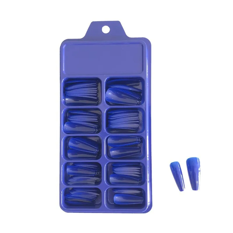 100 шт./упак., блистер, маленькая синяя коробка, накладные ногти, яркие, одноцветные, полное покрытие, балет, дизайн ногтей, маникюр, поддельные ногти, инструменты для красоты