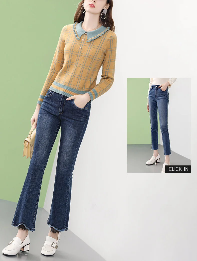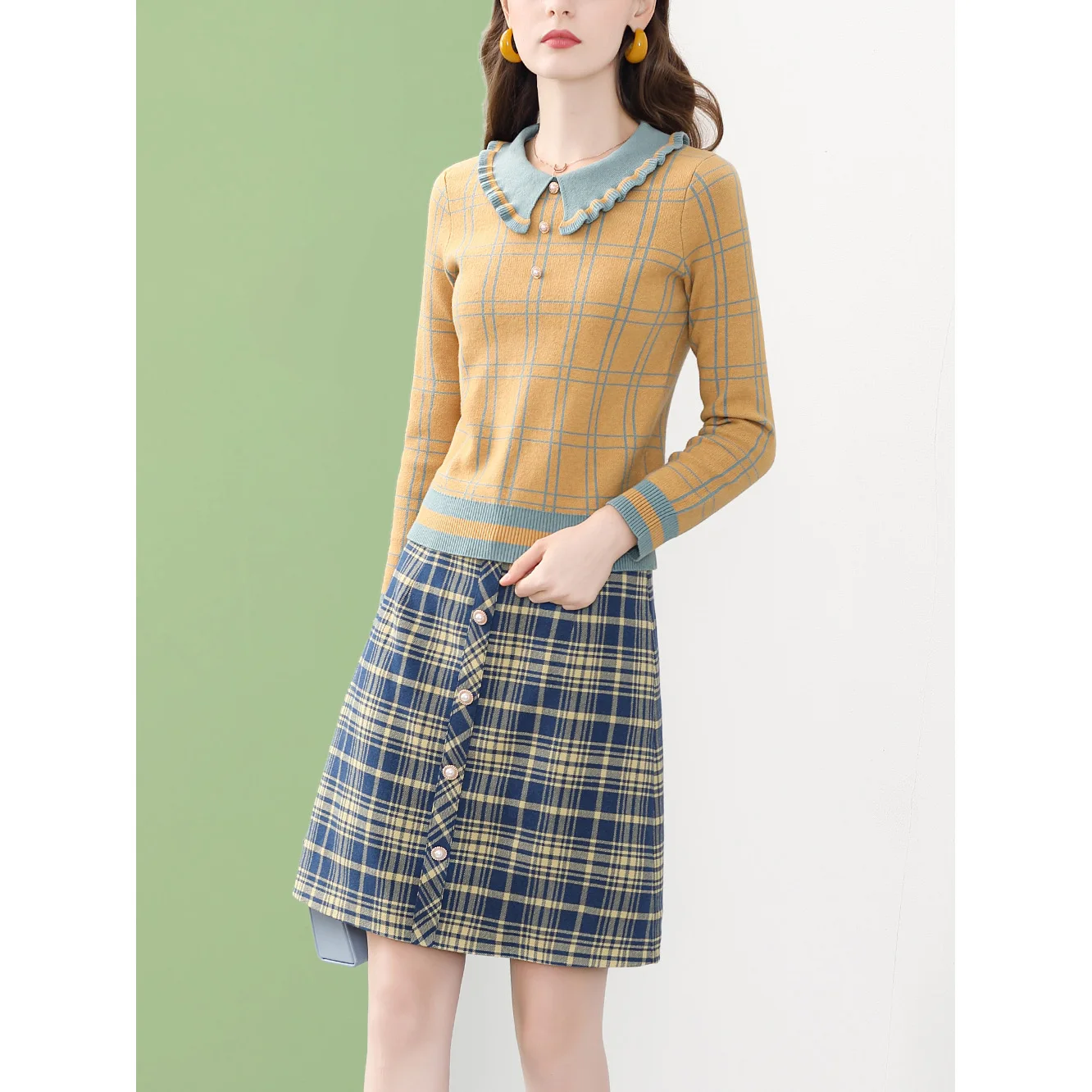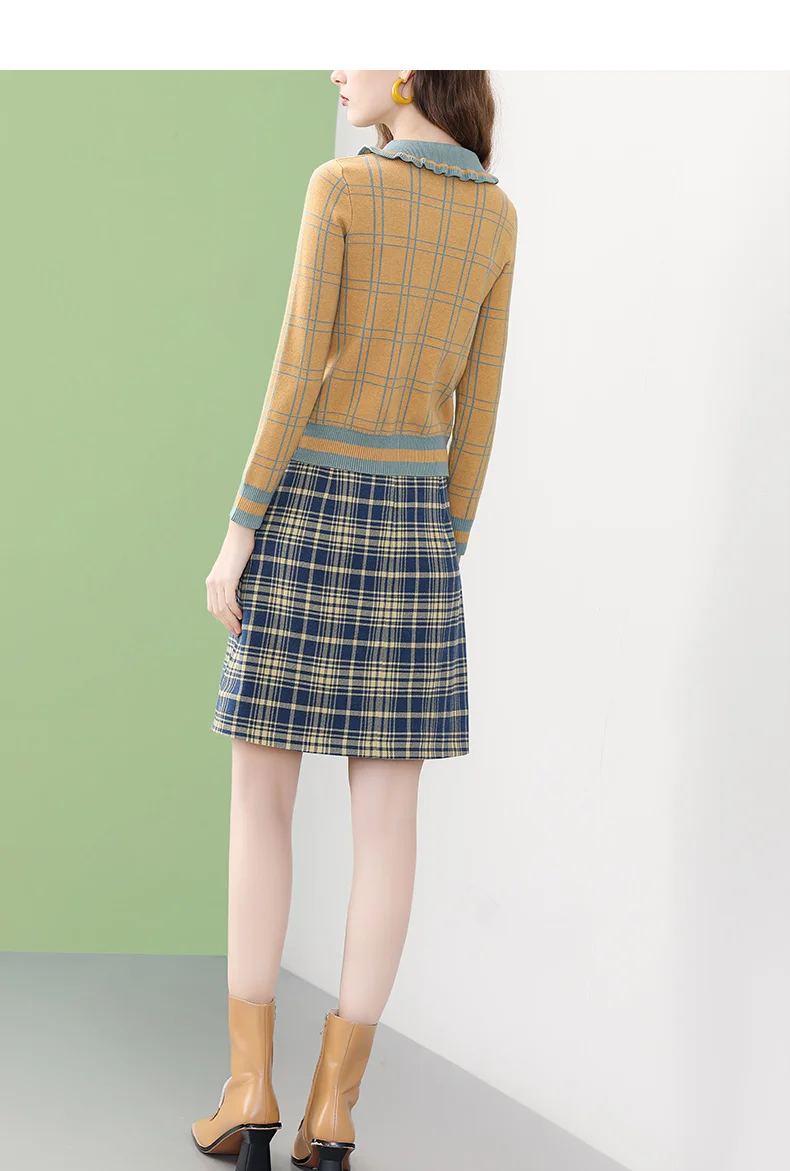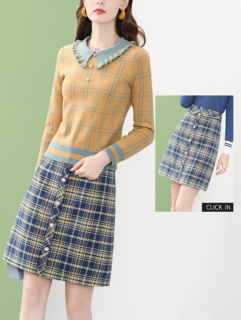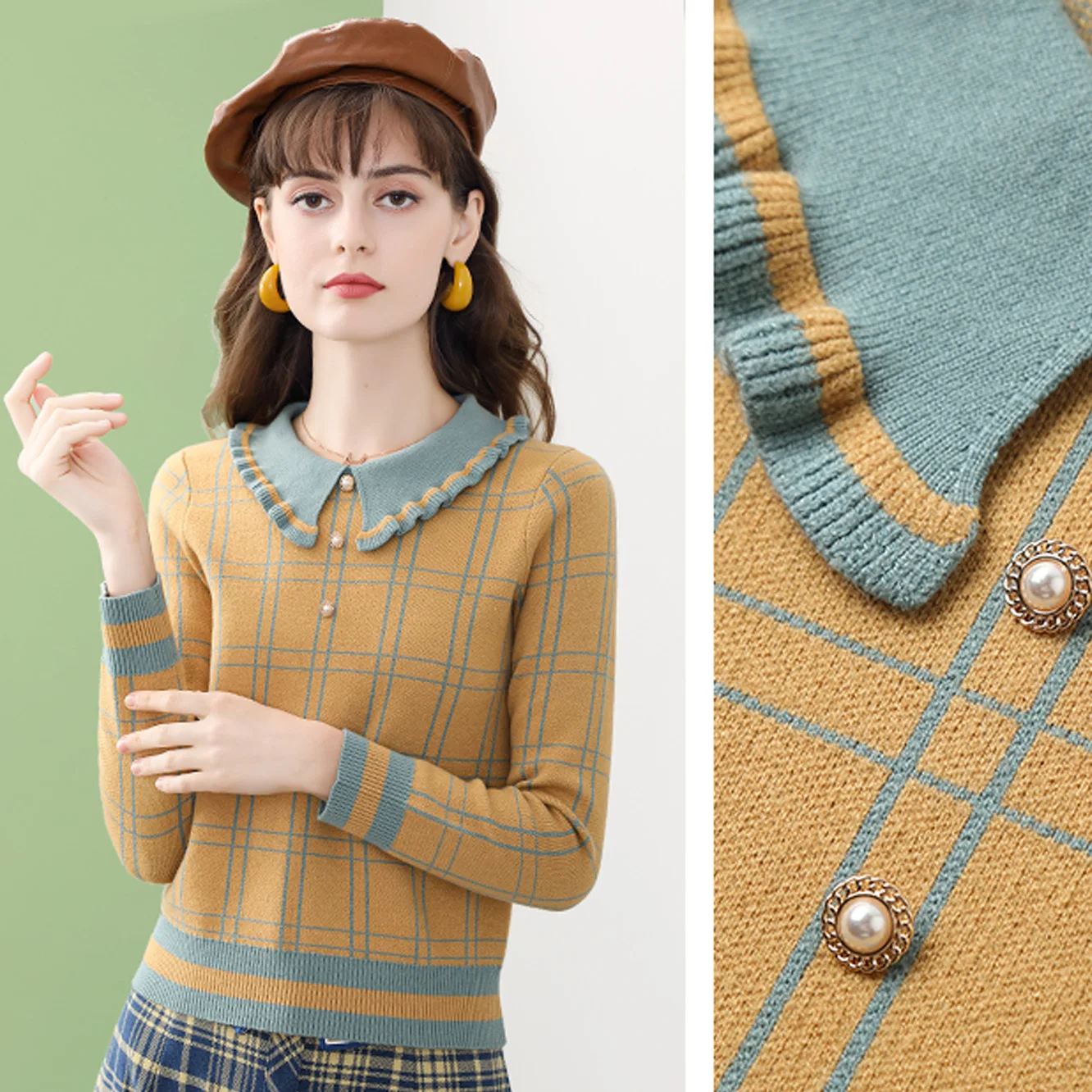 Женская вязаная блузка в клетку ONLY PLUS, желтая повседневная кофта с воротником Питера Пэна и длинными рукавами, Зимний пуловер, уличная одежда, 2021