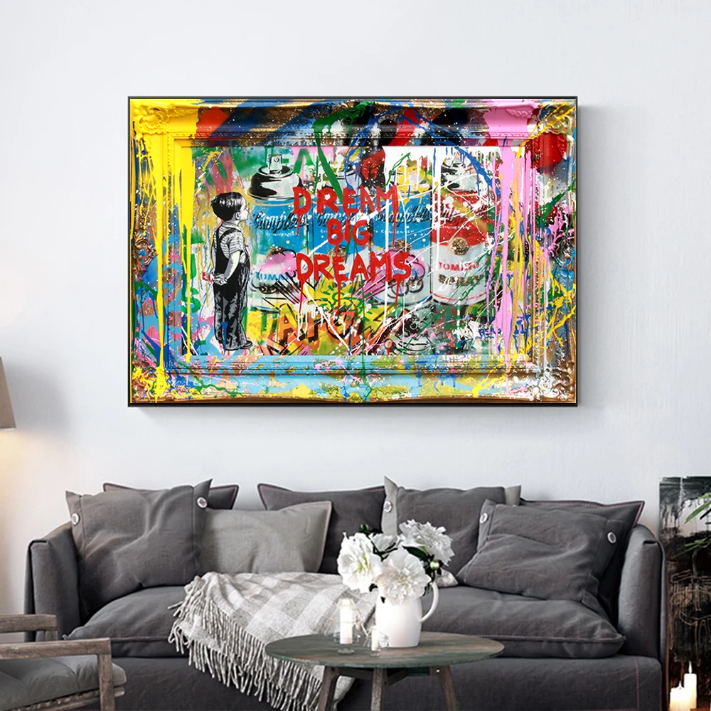 Картина на холсте с изображением граффити мечты, уличное искусство, вдохновляющая Современная Настенная картина, постер для украшения гостиной и дома