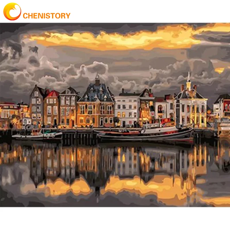 CHENISTORY рамки DIY картина маслом по номерам для взрослых, город закат фотографии расписанную сделай сам в рамке на холсте уникальный подарок