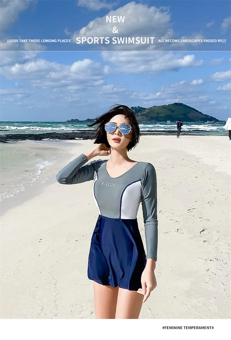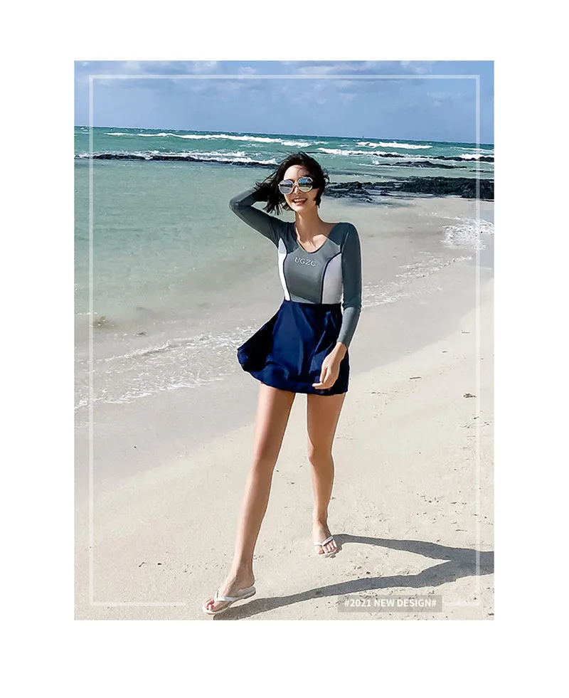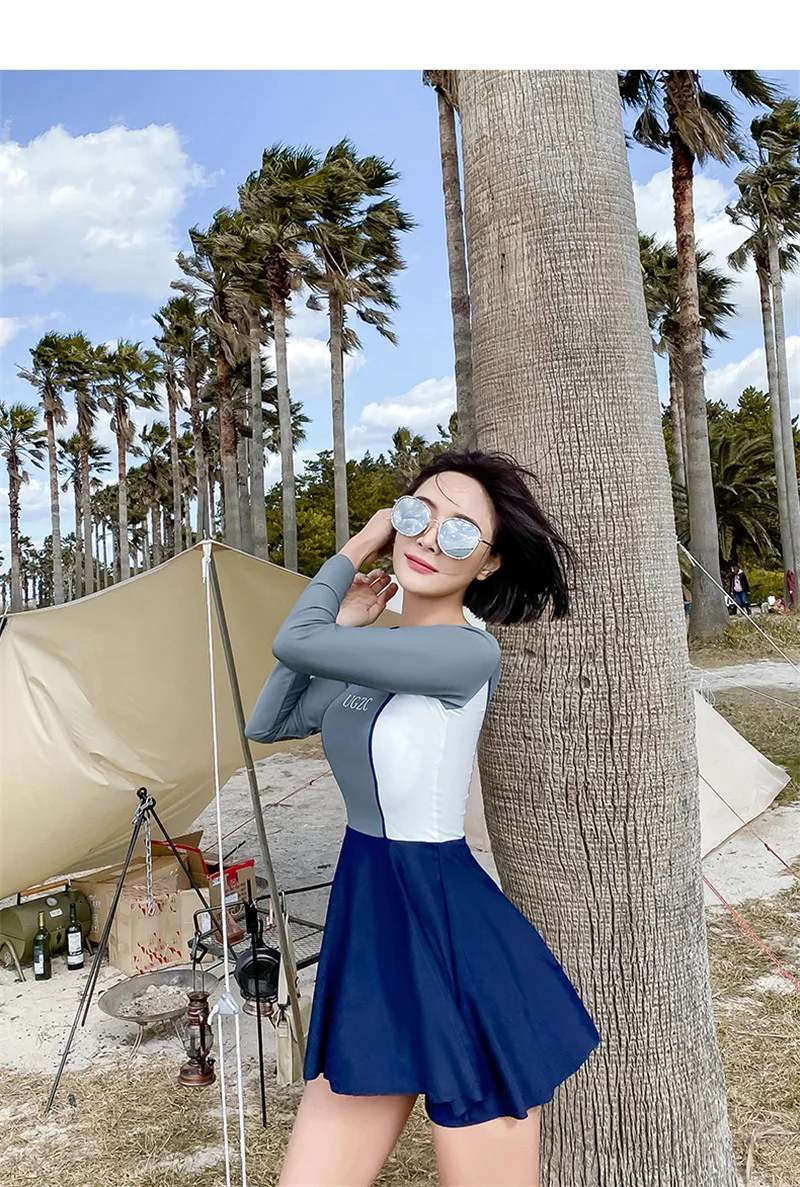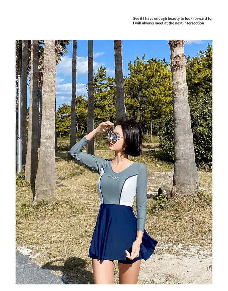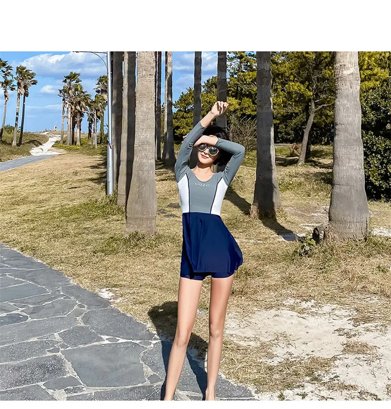 2021 корейский женский купальный костюм, пляжные раздельные купальные костюмы из двух предметов, женская одежда для купания, Купальная юбка, Женский комплект Танкини с длинным рукавом