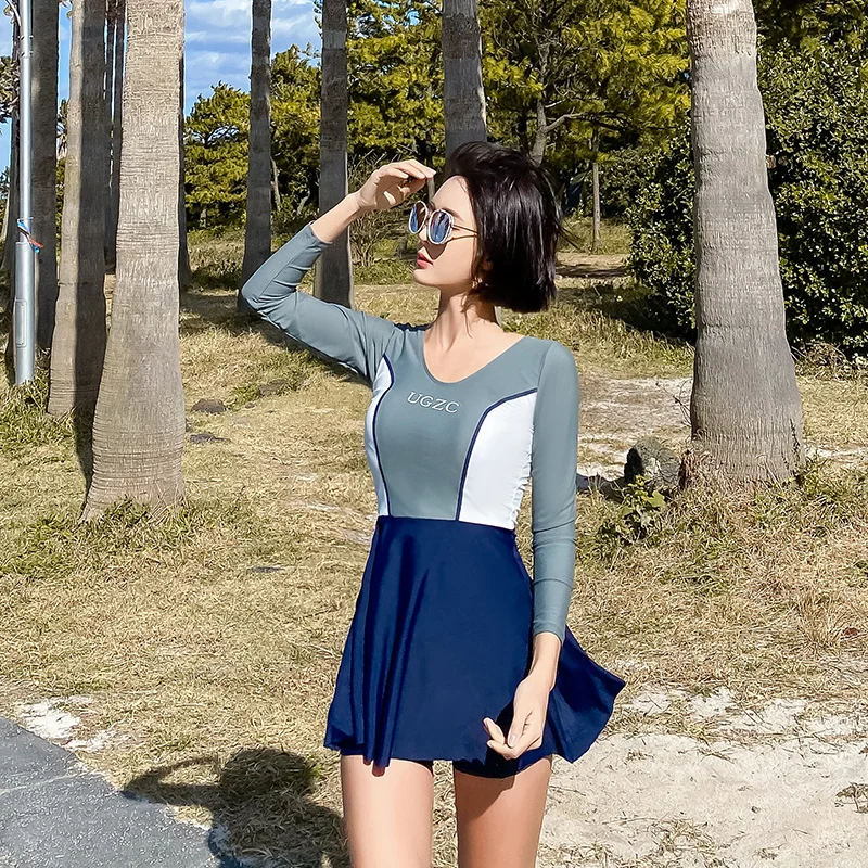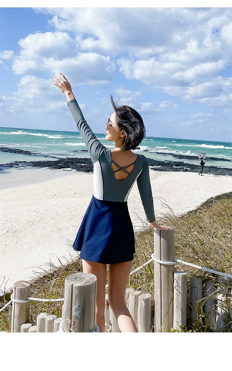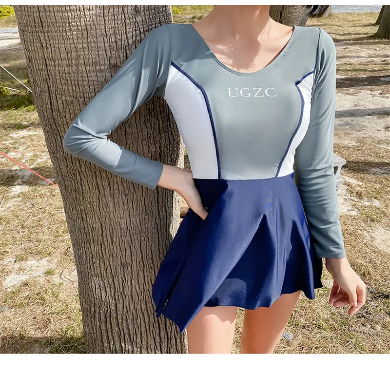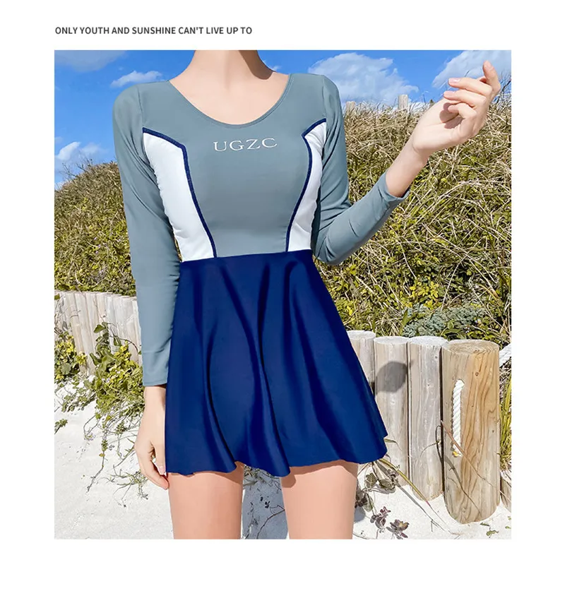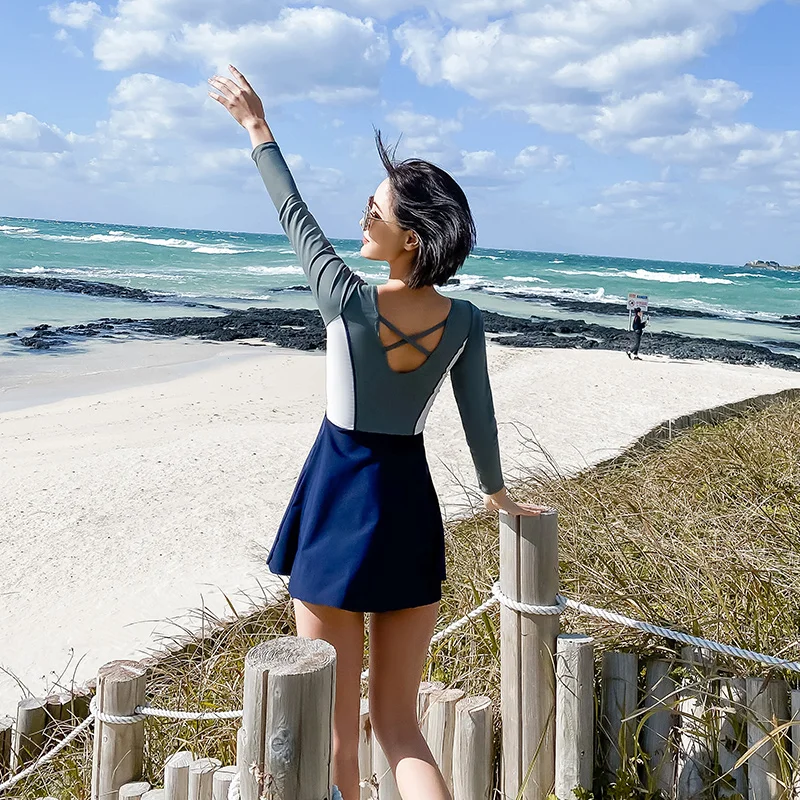 2021 корейский женский купальный костюм, пляжные раздельные купальные костюмы из двух предметов, женская одежда для купания, Купальная юбка, Женский комплект Танкини с длинным рукавом