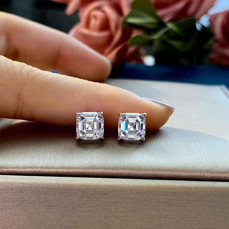 Серьги-гвоздики Asscher с бриллиантами на 100% карата, ювелирные из...