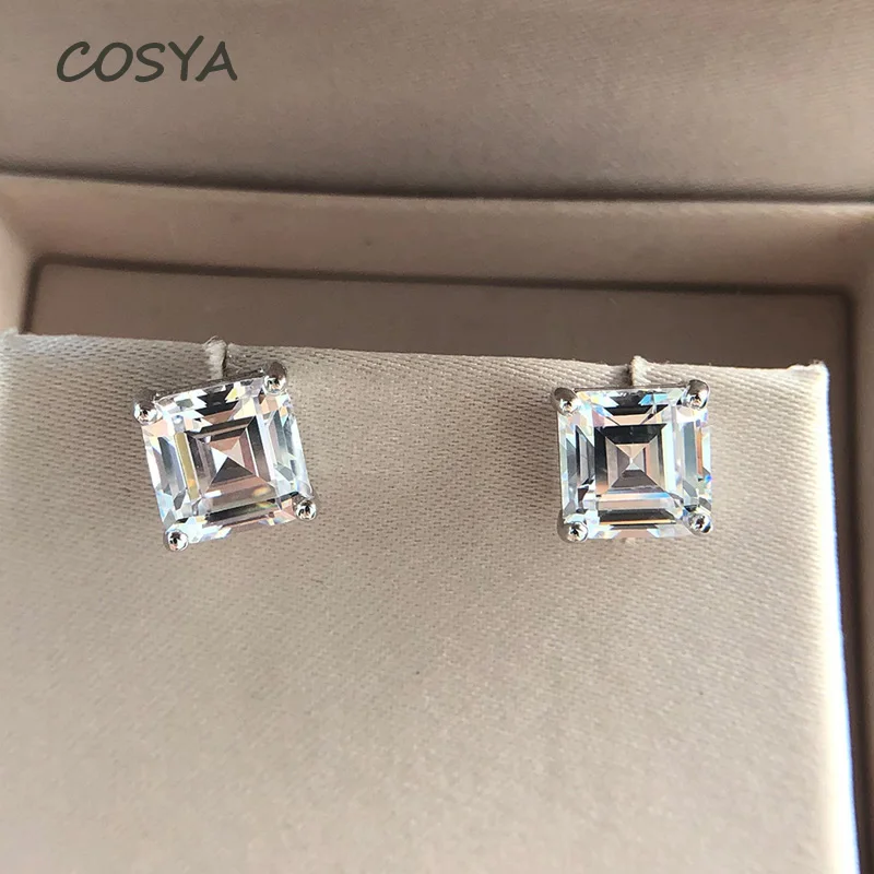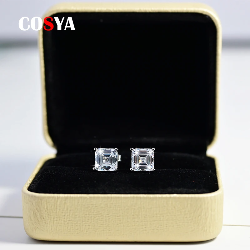 COSYA 100% 925 пробы серебряные 7*7 мм квадратные белые циркониевые серьги-гвоздики сверкающие высокоуглеродные бриллианты универсальные ювелирные украшения подарок