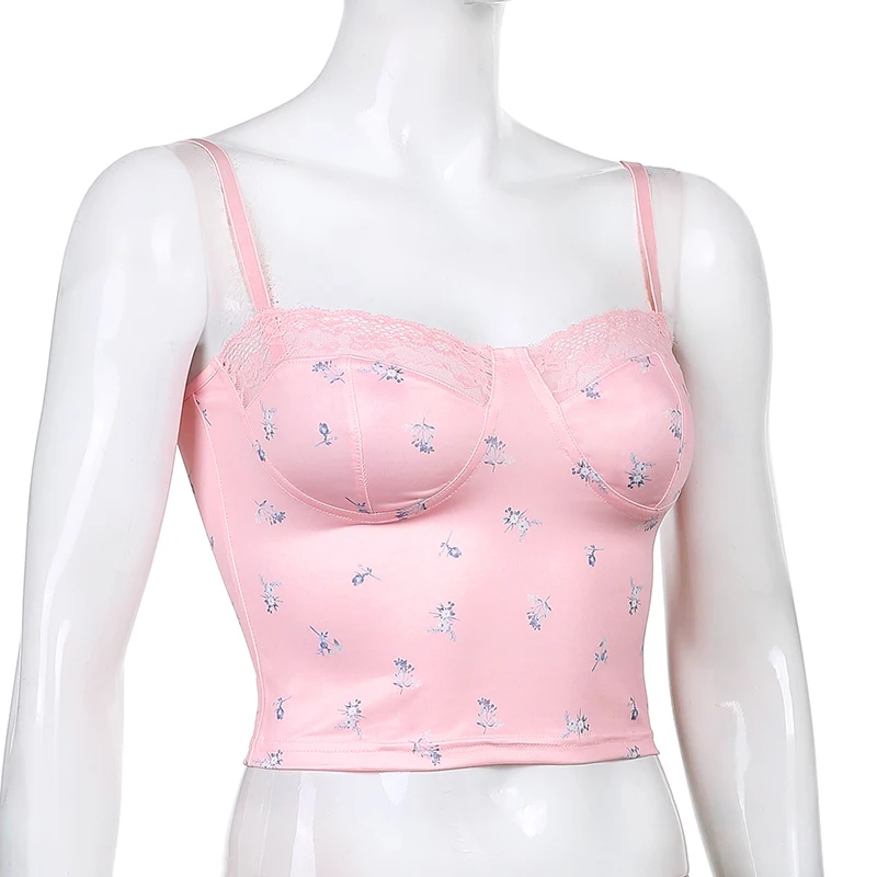 Y2K эстетические милые цветочные топы Женский с кружевной отделкой ...