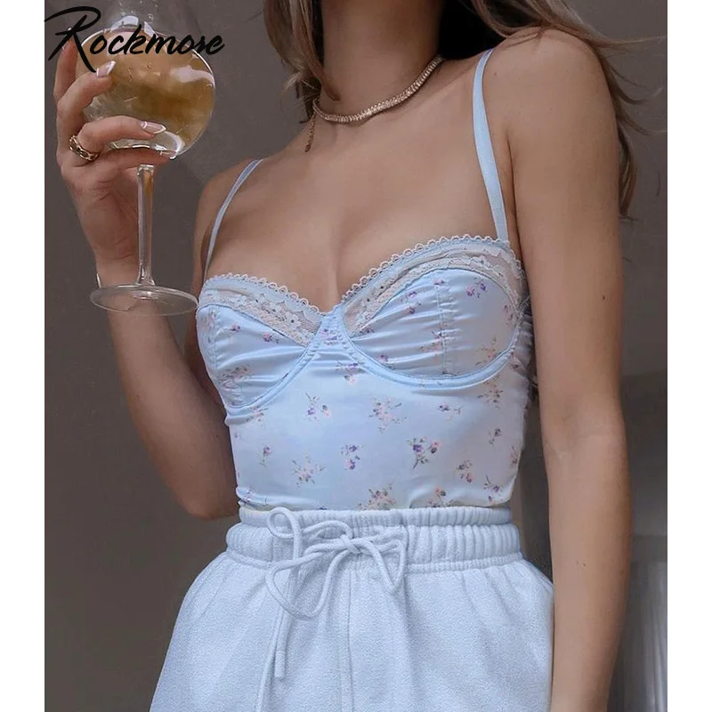 IAMSURE, кружевная отделка, цветочный принт, голубой бюстье, Camiso...