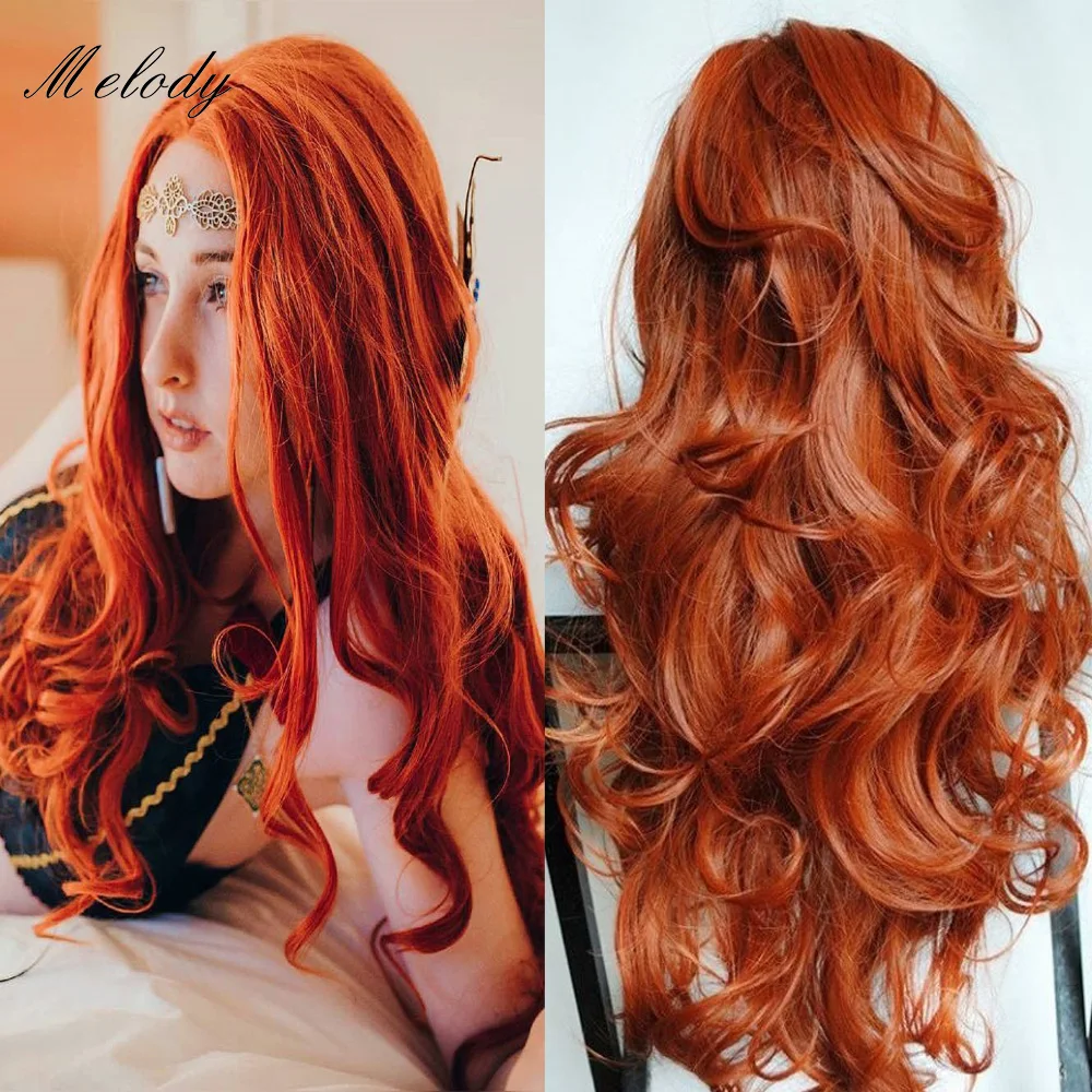 Парик Melody Cooper, оранжевый, красный, 13*3, парик на сетке спереди, синтетический, длинный, волнистый, термостойкий, для женщин, парик для косплея
