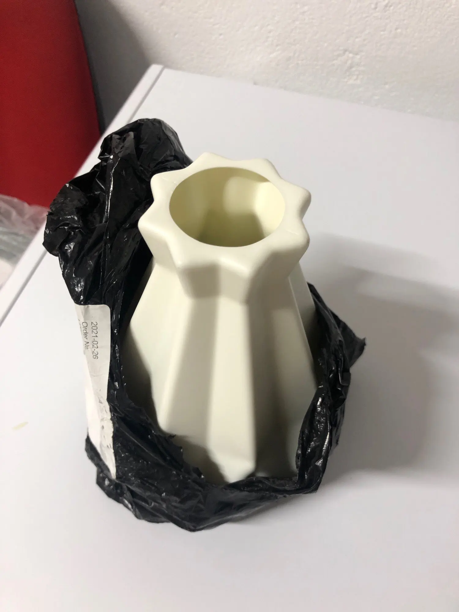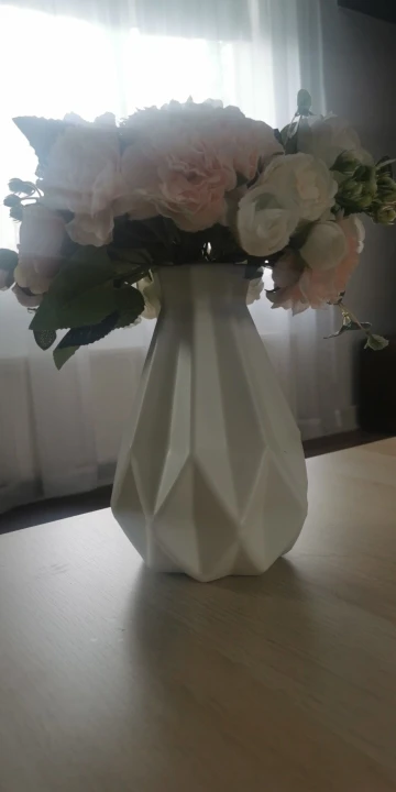 Я не ожидал, что ваза будет такой легкой и такой пластичной. Небольшой дефект в некоторых местах. В остальном довольно в целом.