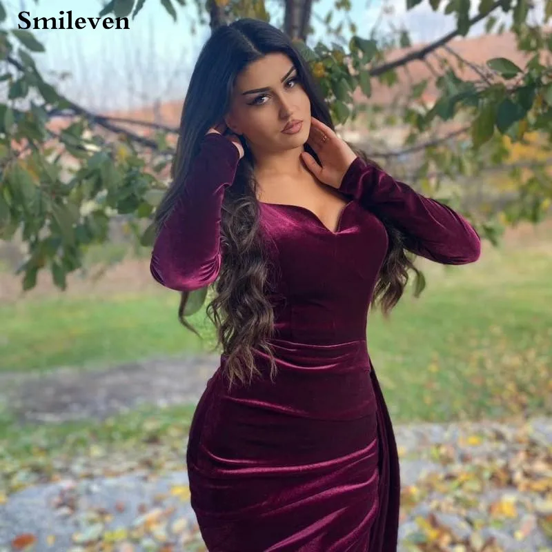 Smileven фиолетовые вельветовые кафтан арабские вечерние платья сек...
