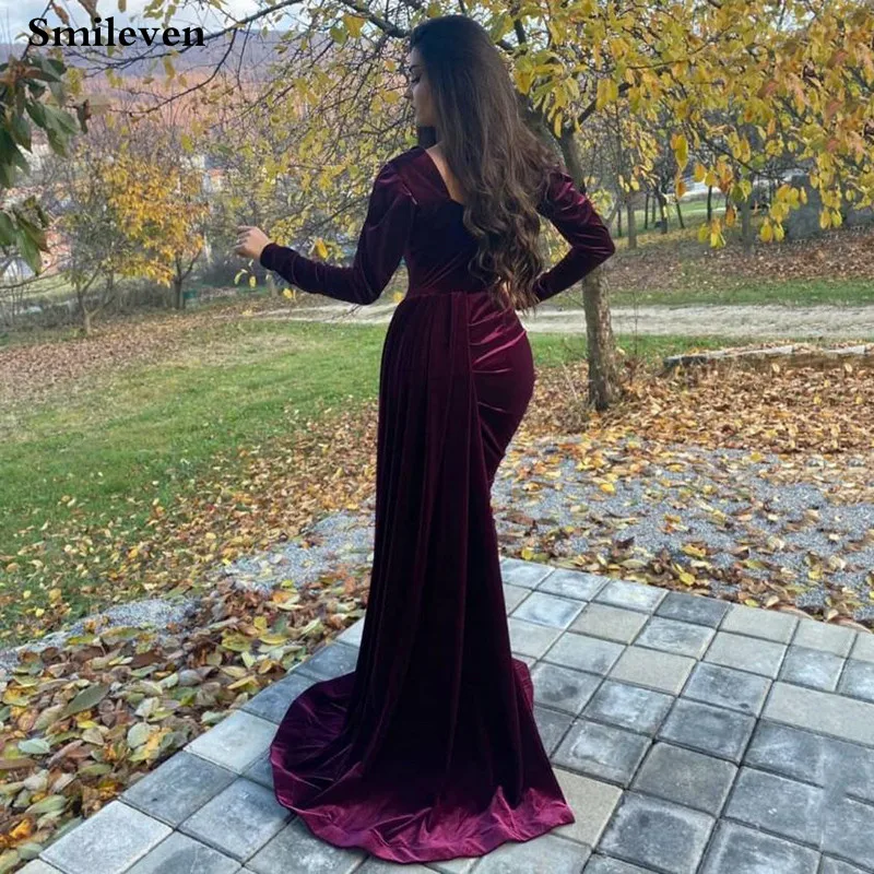Бархатное вечернее платье Smileven, бордовое, с длинным рукавом, с ...