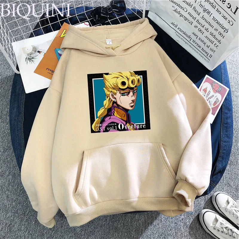 Jojo странные приключения аниме унисекс свитер с капюшоном Harajuku Модные Золотой ветер уличная Женская куртка с капюшоном Giorno Giovanna прыгать