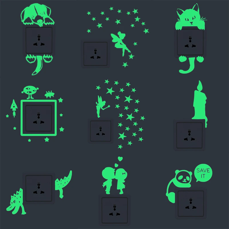 Световой мультяшный переключатель наклейки светится в темноте кошки наклейки люминесцентные фея с Луной и звездами стикеры детской комнаты украшение дома